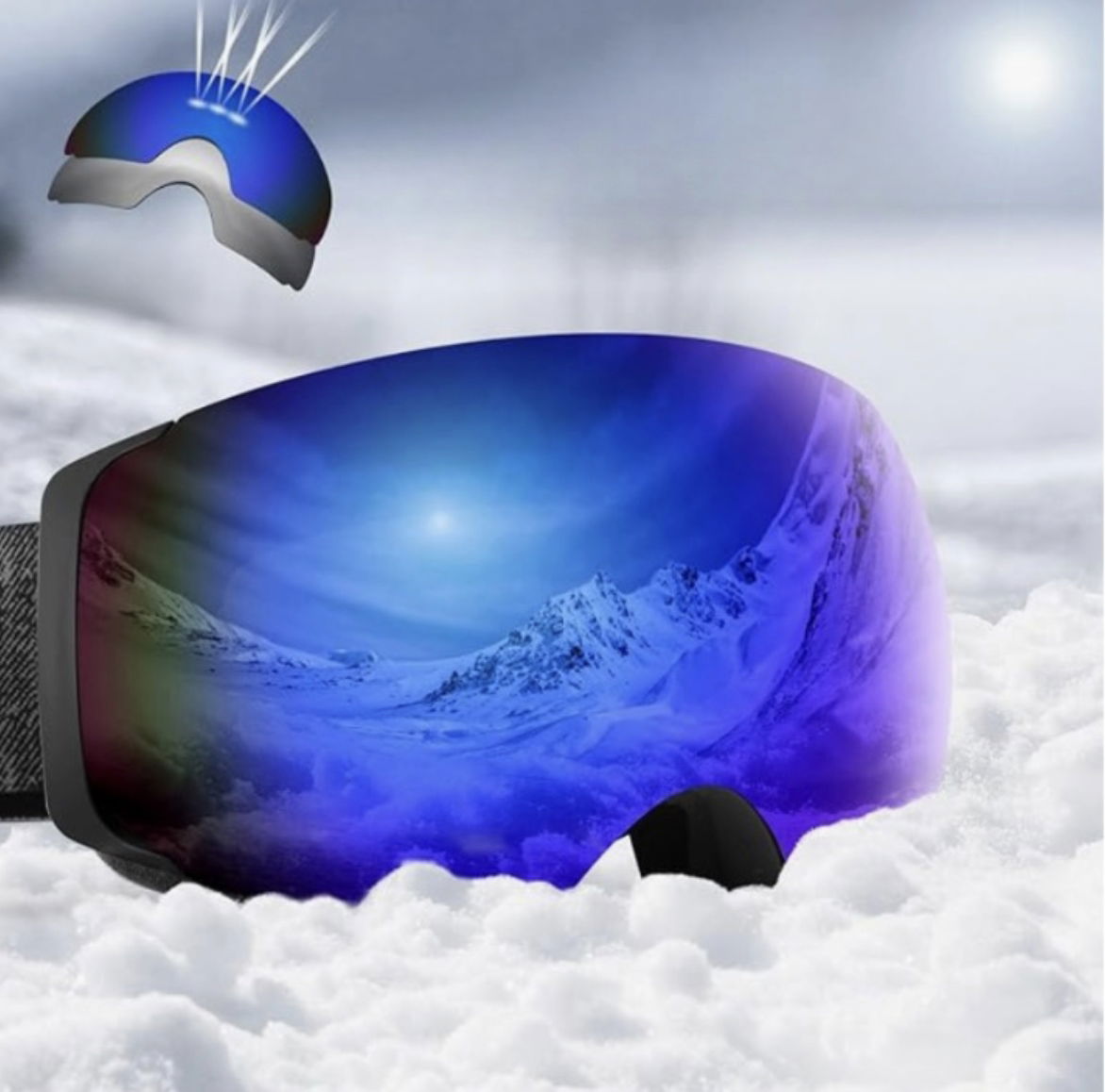 Wszystkie maski oferują 100% ochronę przed promieniowaniem UV. W znacznym stopniu zapobiega promieniom słonecznym przez światło ultrafioletowe lub silne odbicie słońca na polu śnieżnym.
