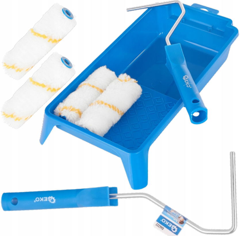 Zawartość zestawu: wałek malarski – 2szt; uchwyt do wałka malarskiego, kuweta malarska