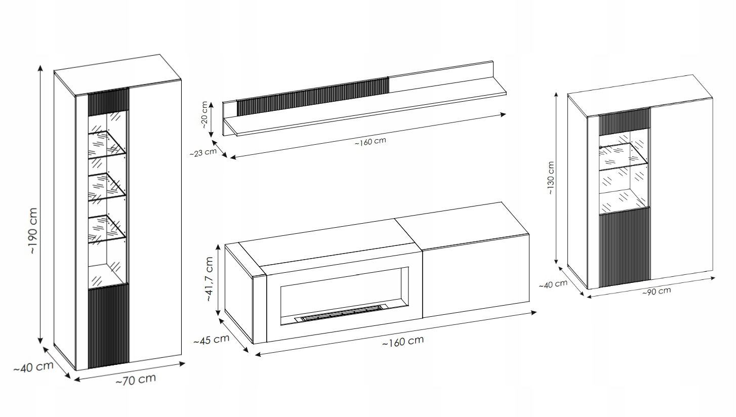 Meble do salonu ARON z biokominkiem – styl i ciepło w Twoim salonie