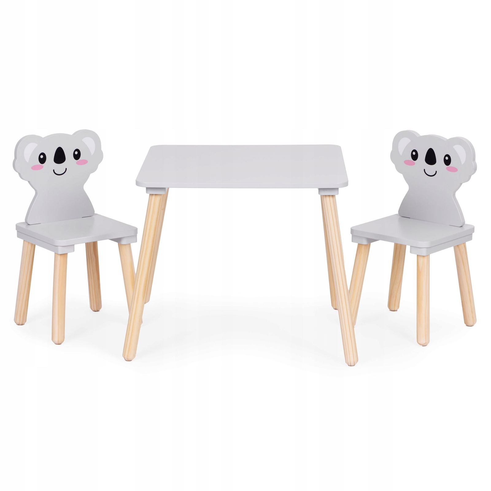 - Komplet: stolik + 2 krzesełka z oparciem w kształcie koali