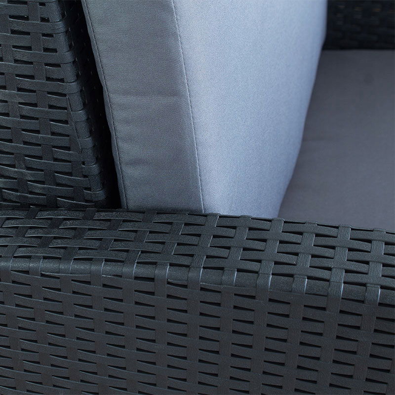 Wykonane z najwyższej jakości technorattanu, mocnej konstrukcji, dzięki czemu meble są wytrzymałe, stabilne i odporne na warunki atmosferyczne. Dzięki tym właściwościom meble "nie boją się" deszczu, a przy wysokich temperaturach nie blaknieją.