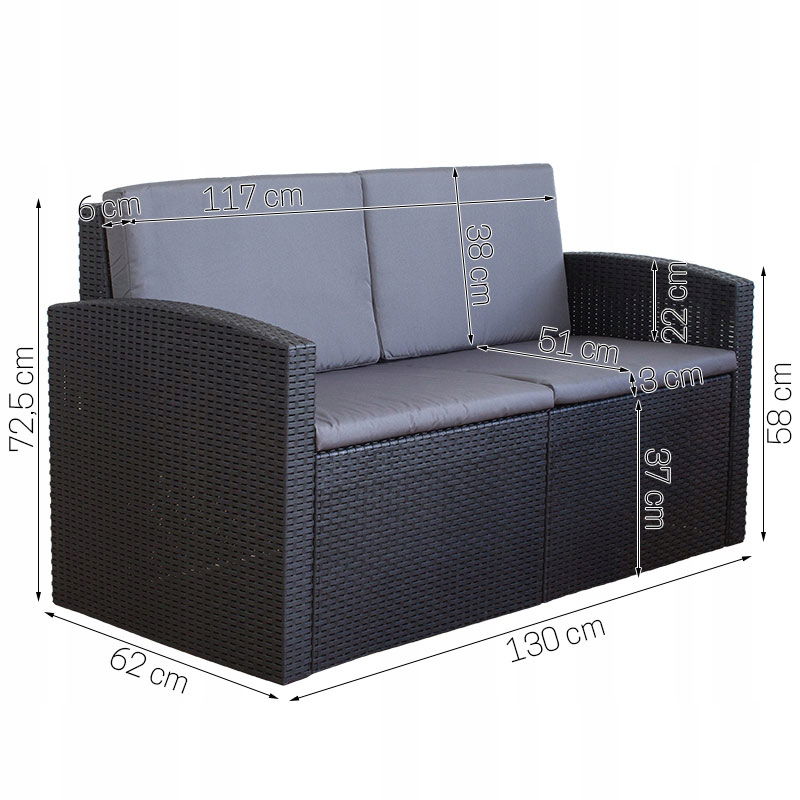 Zestaw mebli OGRODOWYCH rattan X007 czarny komplet tarasowy