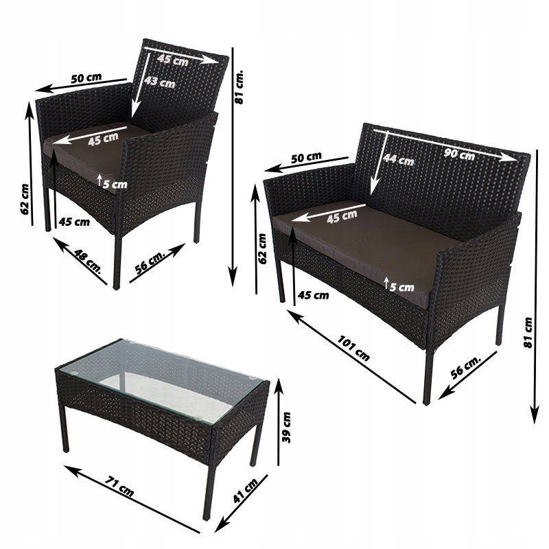 - SOLIDNE WYKONANIE – nasz komplet mebli ogrodowych wykonany jest z wysokiej jakości materiałów – konstrukcja to stal malowana proszkowo, opleciona trwałym technorattanem, odpornym na działanie promieni słonecznych UV, blat stolika wykonany jest ze szkła hartowanego – możesz bez obaw stawiać na nim gorące napoje, powierzchnia jest bardziej odporna na zarysowania.