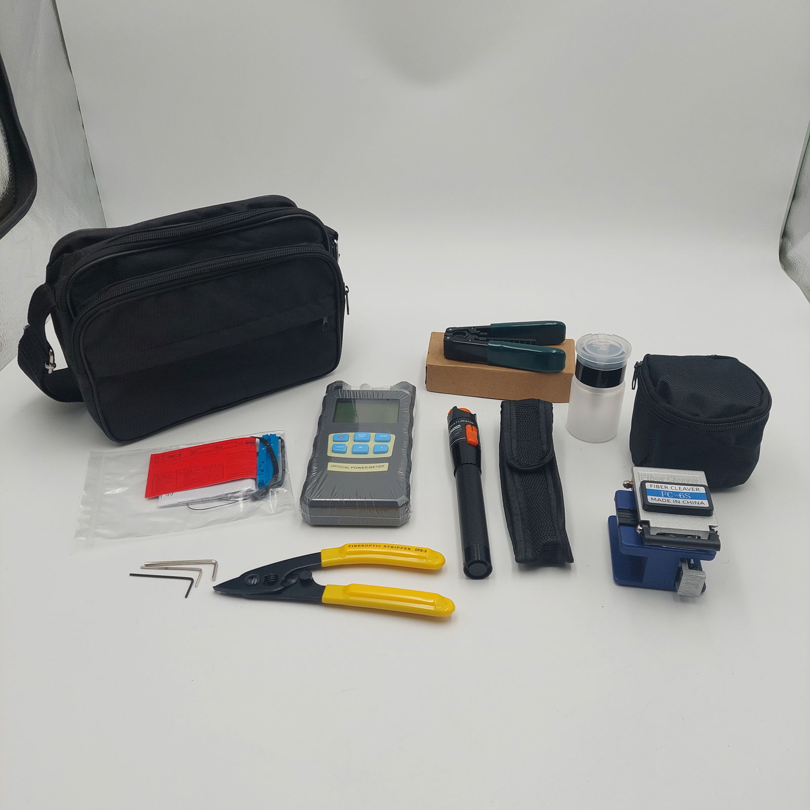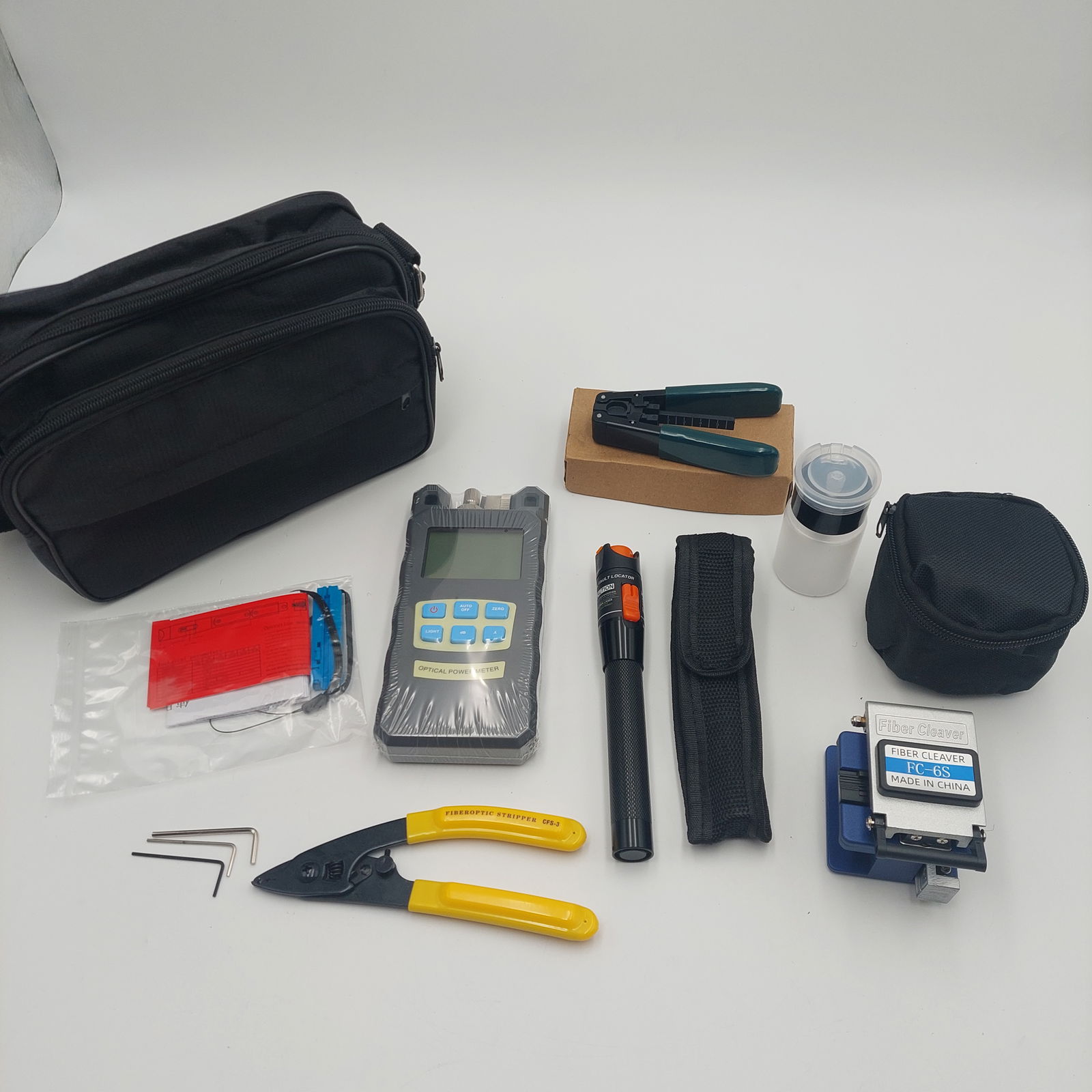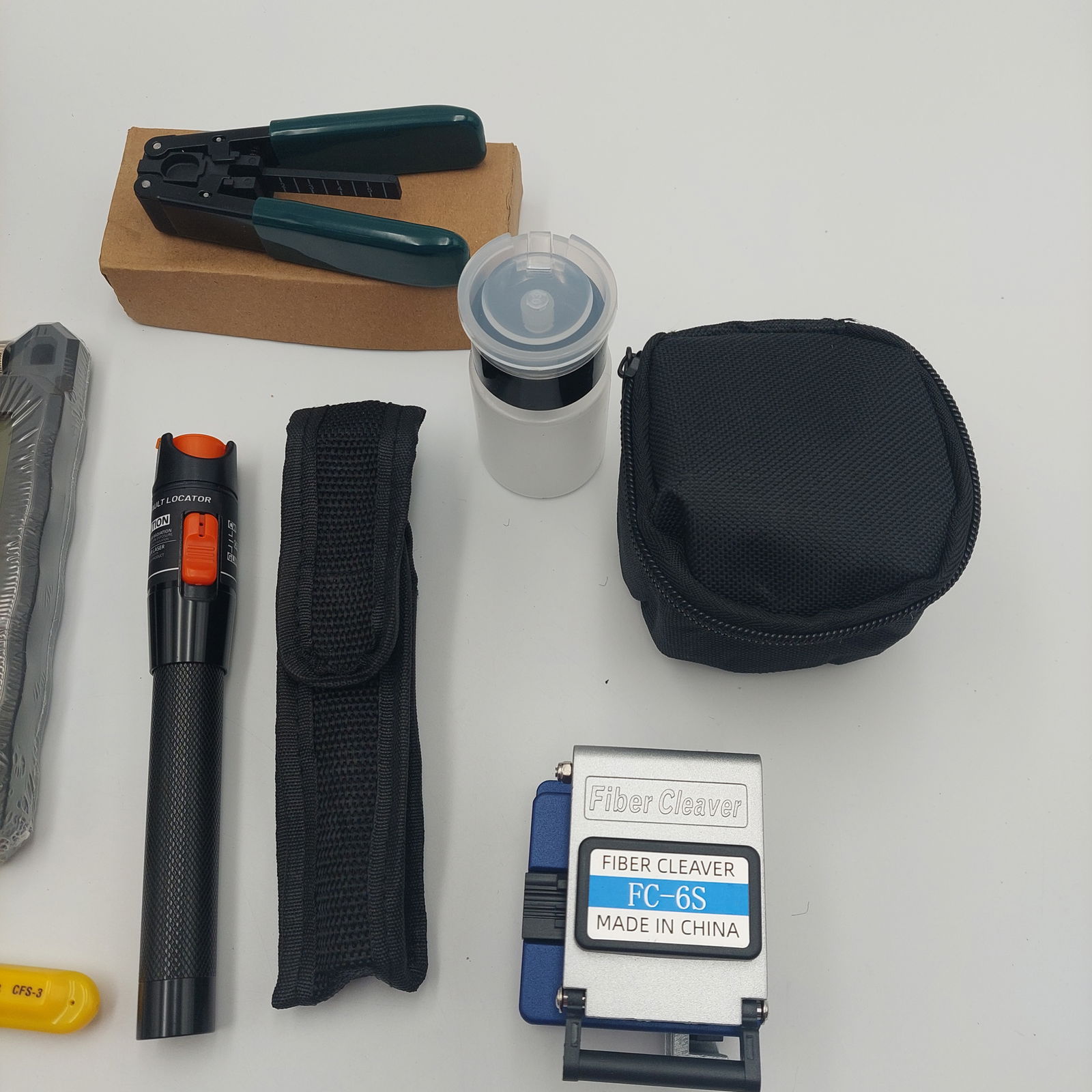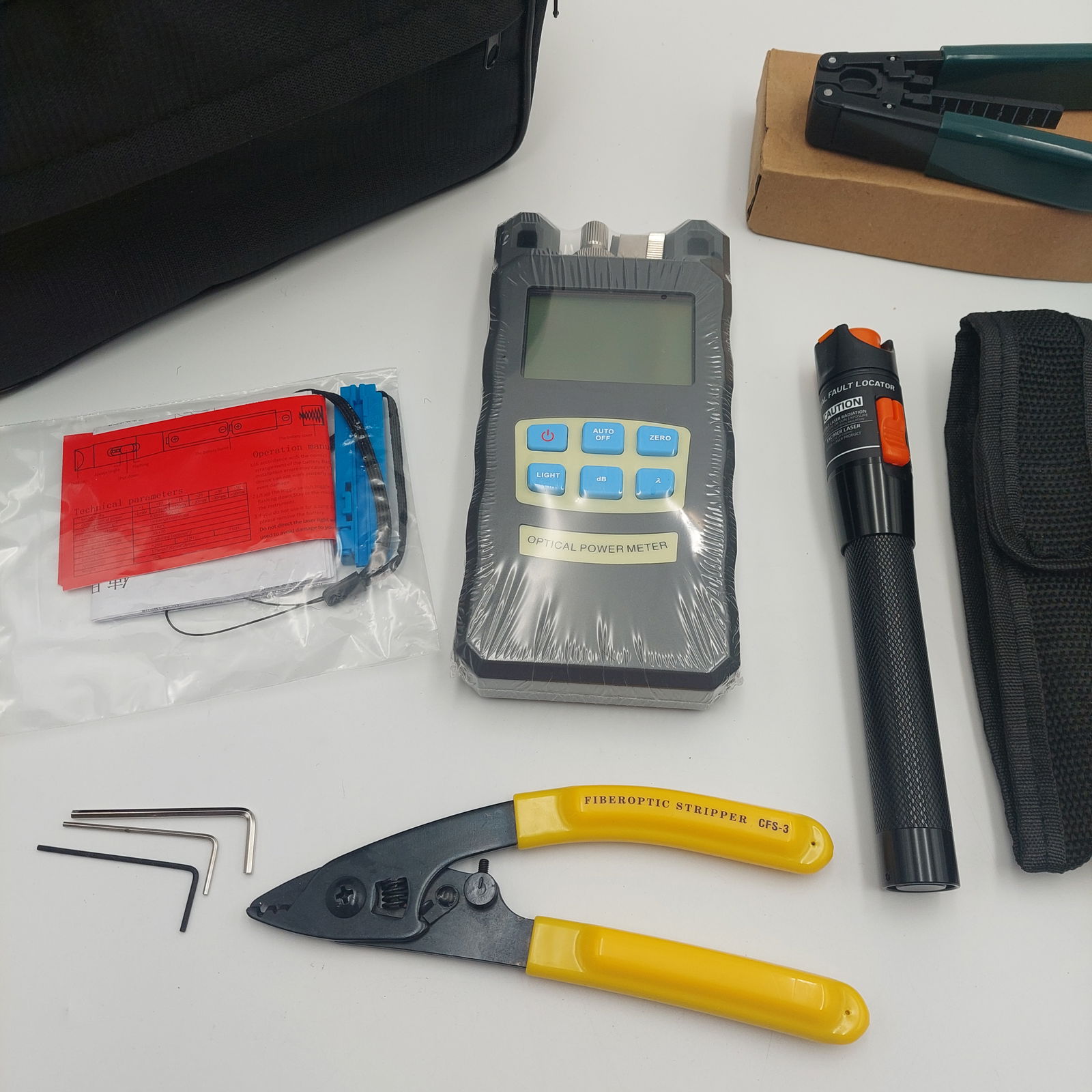 1 x miernik mocy światłowodu DXP-40D 1 x złącze miernika mocy światła światłowodowego 1 x tasak światłowodowy FC-6S 1 x zielony ściągacz do kabli 1 x żółte 3 szczypce szczękowe 1 x długopis z czerwonym światłem HT-10 1 x smycz na czerwone światło 1 x niebieski utrwalacz długości 3 x klucz sześciokątny 3 x czarna torba do przechowywania