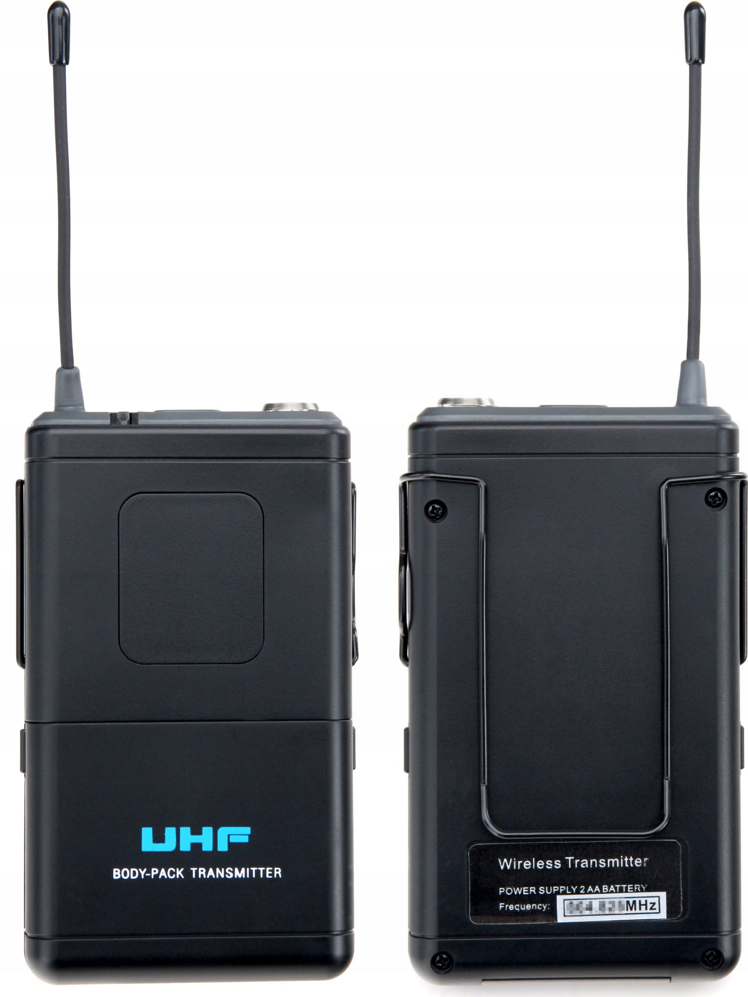 - ZESTAW MIKROFONÓW (kardioidalna charakterystyka kierunkowa) 4-kanałowy nadajnik radiowy z 2 dynamicznymi mikrofonami doręcznymi i dwoma mikrofonami Lavalier, kompaktowe nadajniki kieszonkowe z klipsem do paska