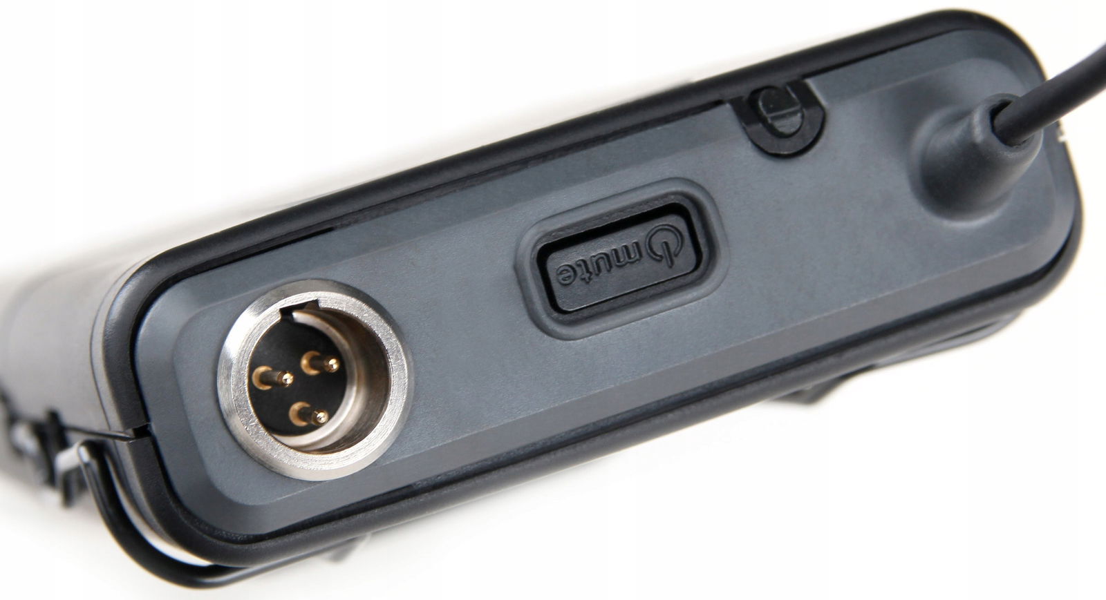 Zawartość obejmuje nadajnik Bodypack do każdego mikrofonu krawatowego. Haczyk znajdujący się z tyłu umożliwia łatwe przymocowanie go do paska lub ubrania. Aby móc używać nadajników kieszonkowych jako nadajników do instrumentów, w zestawie znajdują się adaptery jack.