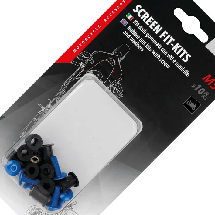 Zasady bezpieczeńśtwa i użytkowania: Zestaw mocowań do owiewek i szyb motocyklowych: 10 sztuk śrubek M5, kod ean 8000692916544