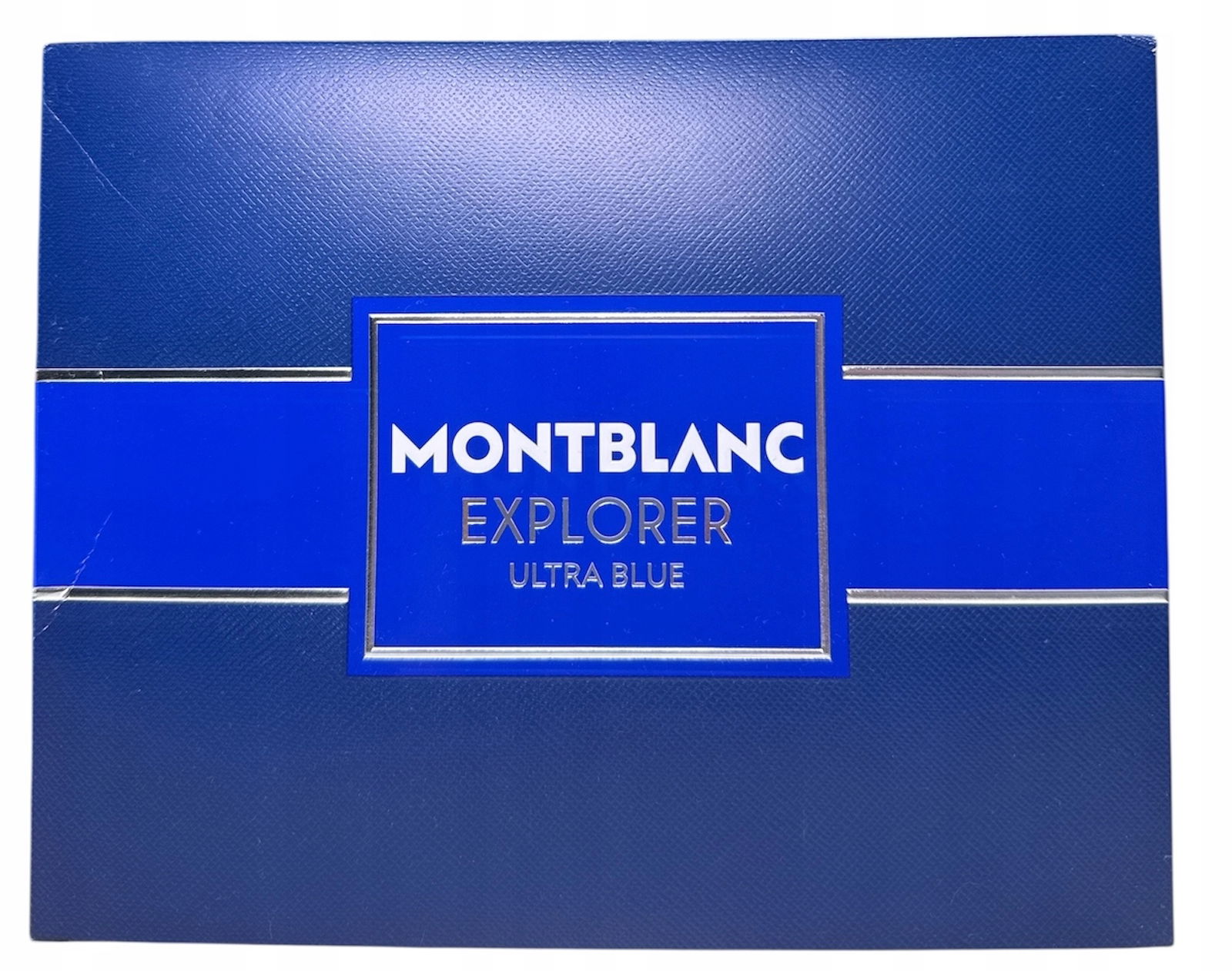 Montblanc Explorer Ultra Blue Zestaw EDP 100 ml + EDP 7,5 ml + Żel pod prysznic 100 ml — bergamotka, owoce egzotyczne, różowy pieprz; nuty morskie, ambra; drewno, paczula, skóra