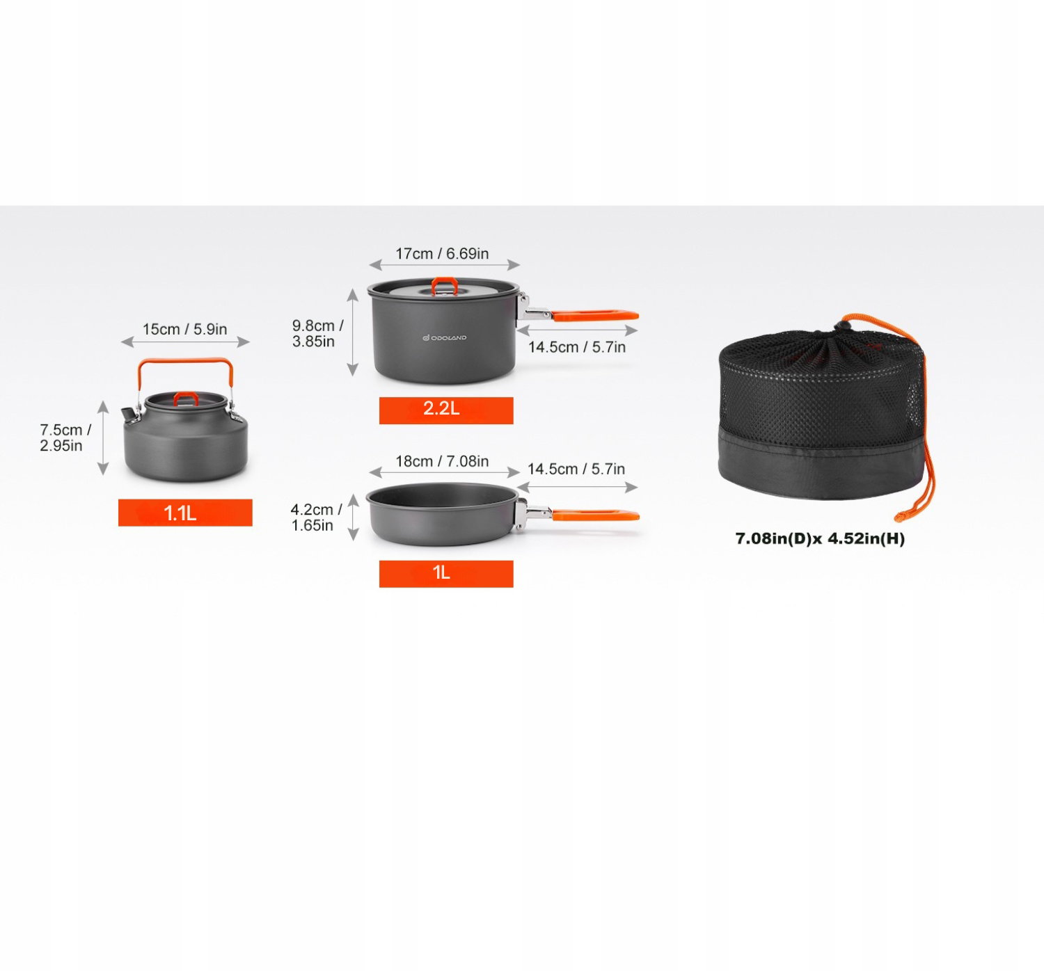 Zestaw Naczyń Kempingowych Turystycznych Odoland - Garnek Patelnia Czajnik