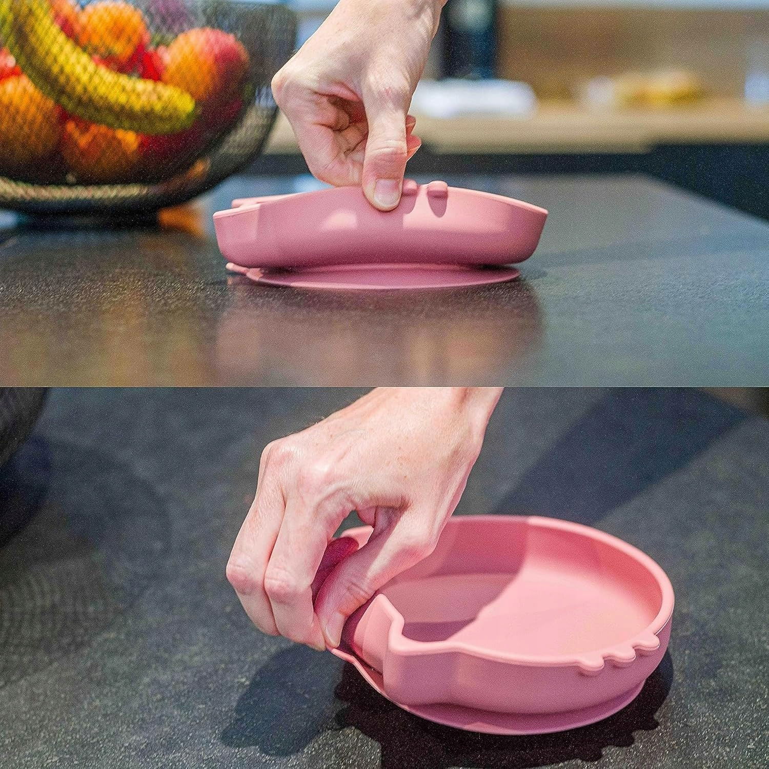 Zestaw Naczyń Silikonowych Dla Dzieci Ciemnoróżowy Talerzyk Z Przyssawką