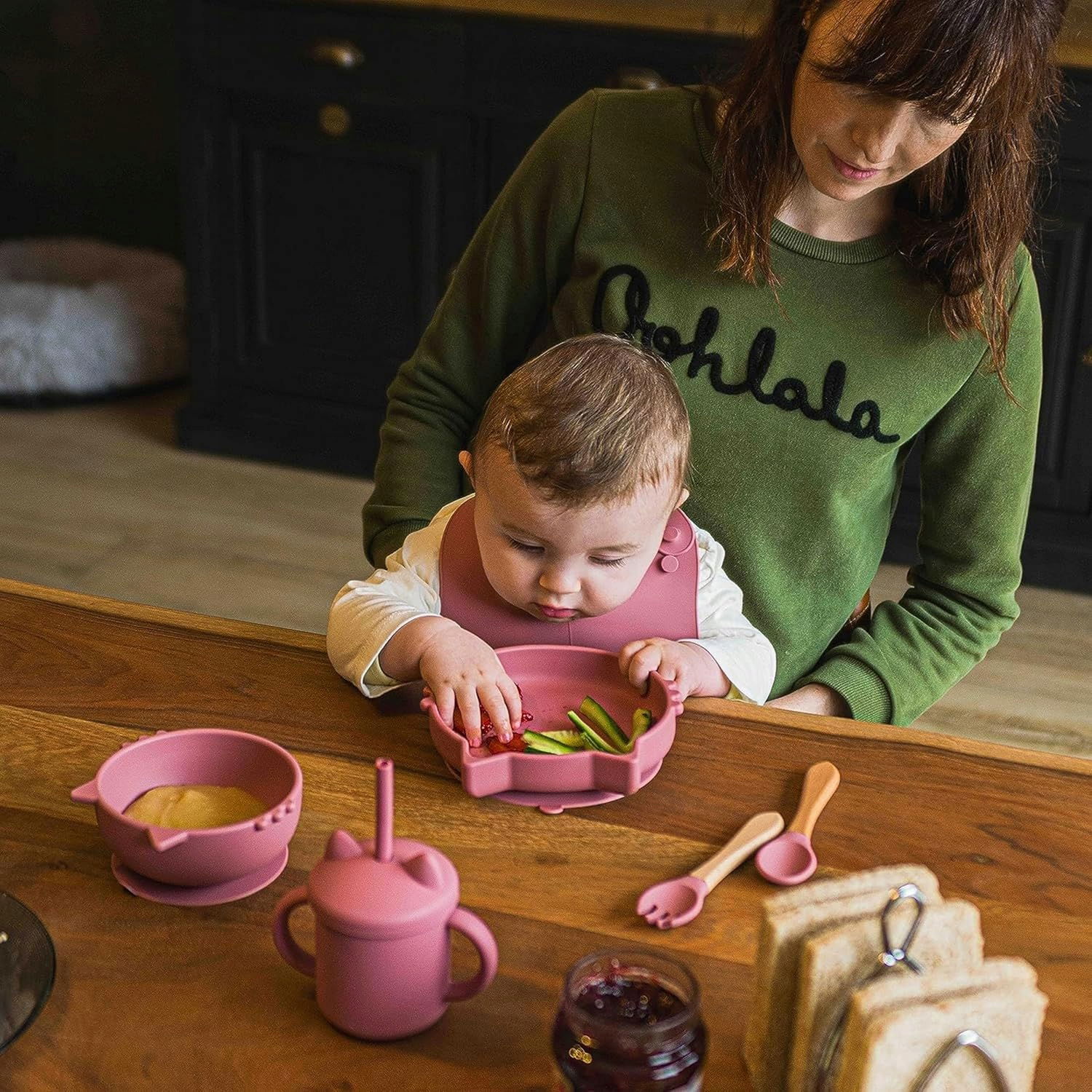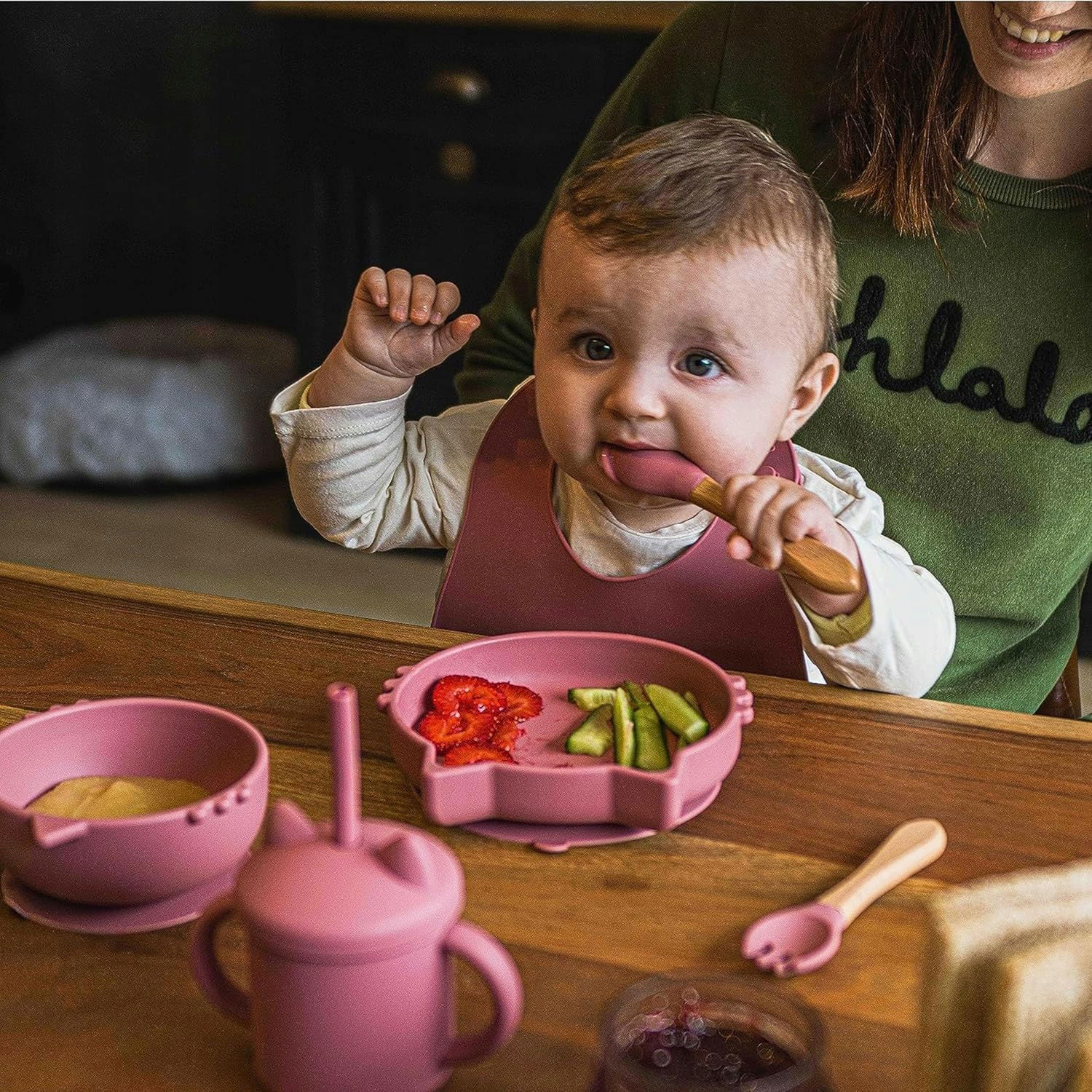 Dzięki antypoślizgowej przyssawce naczynia są stabilne, co minimalizuje ryzyko wypadków. Specjalnie zaprojektowane sztućce ułatwiają dzieciom naukę samodzielnego jedzenia i wspierają ich rozwój.