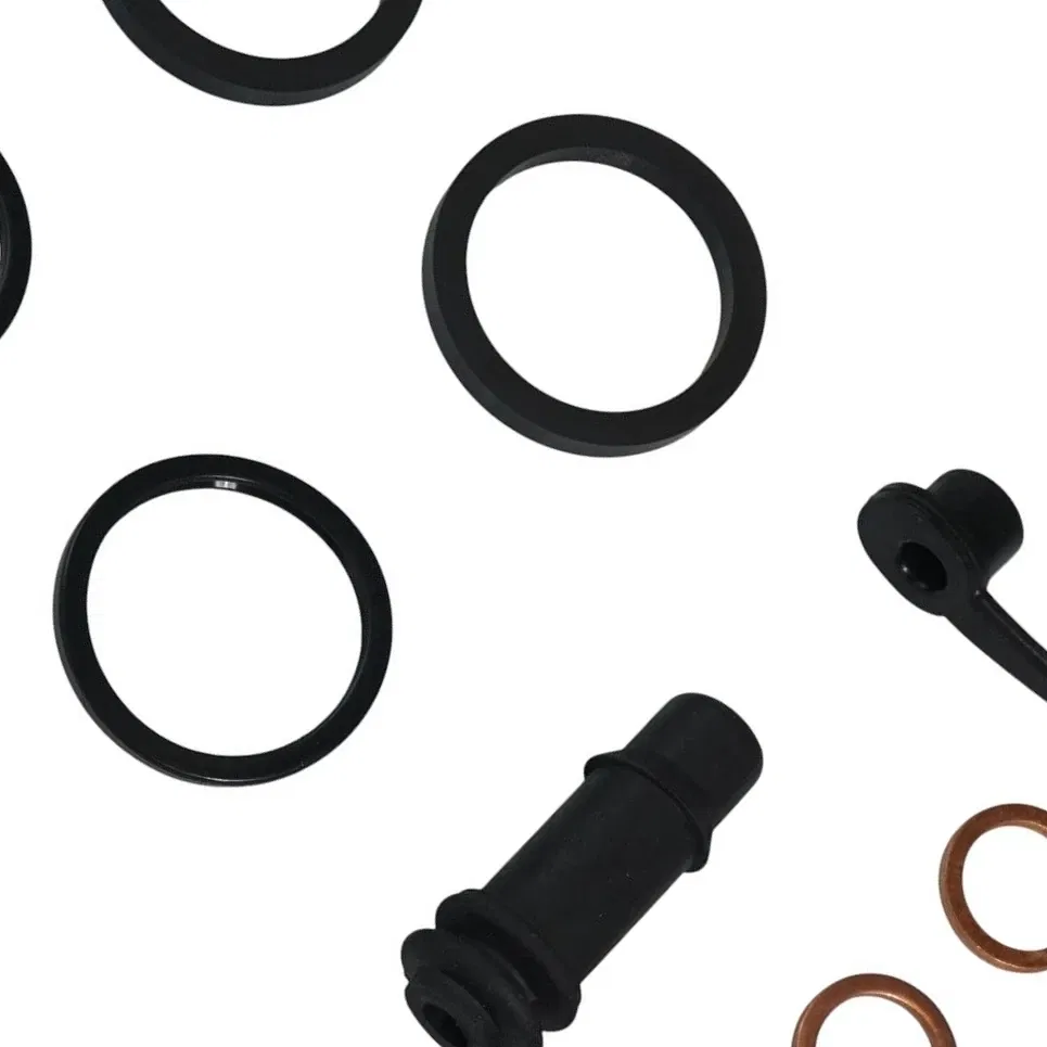 - Podczas montażu należy używać wyłącznie dedykowanego smaru do tłoczków i uszczelek (zwykle dołączonego do zestawu lub zgodnego ze specyfikacją producenta); zabrania się używania smarów na bazie ropy naftowej, które niszczą gumowe uszczelnienia.