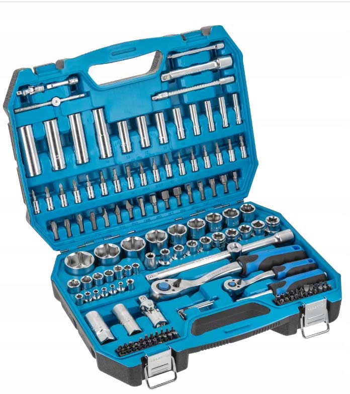 W skład zestawu wchodzi aż 144 elementów, co sprawia, że jesteś gotowy na wszelkie wyzwania. Narzędzia zawarte w zestawie są wykonane z wysokiej jakości materiałów, które gwarantują długotrwałe użytkowanie i odporność na ciężkie warunki pracy. To idealne rozwiązanie zarówno do prac w domowym warsztacie, jak i w profesjonalnych garażach.