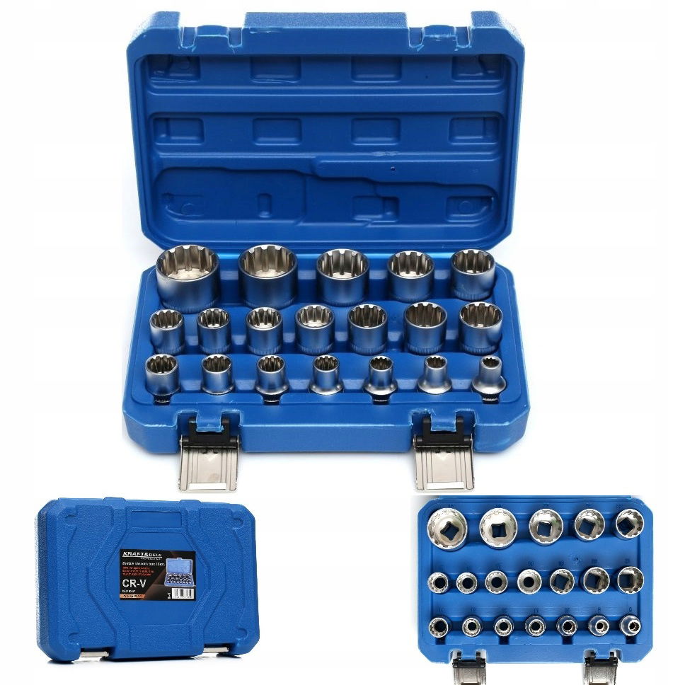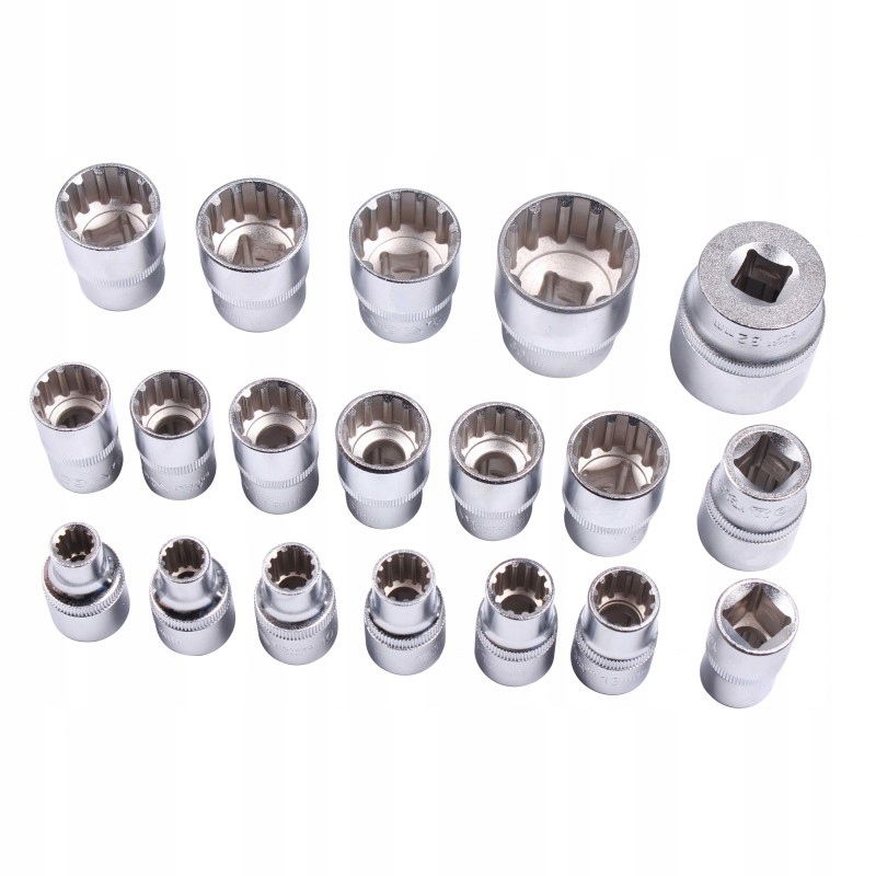 Komplet nasadek E-TORX na 1/2" . Zestaw jest starannie i precyzyjnie wykonany z wysoce wytrzymałej stali chromowo-wanadowej (CrV), co znacznie zwiększa ich trwałość i żywotność.