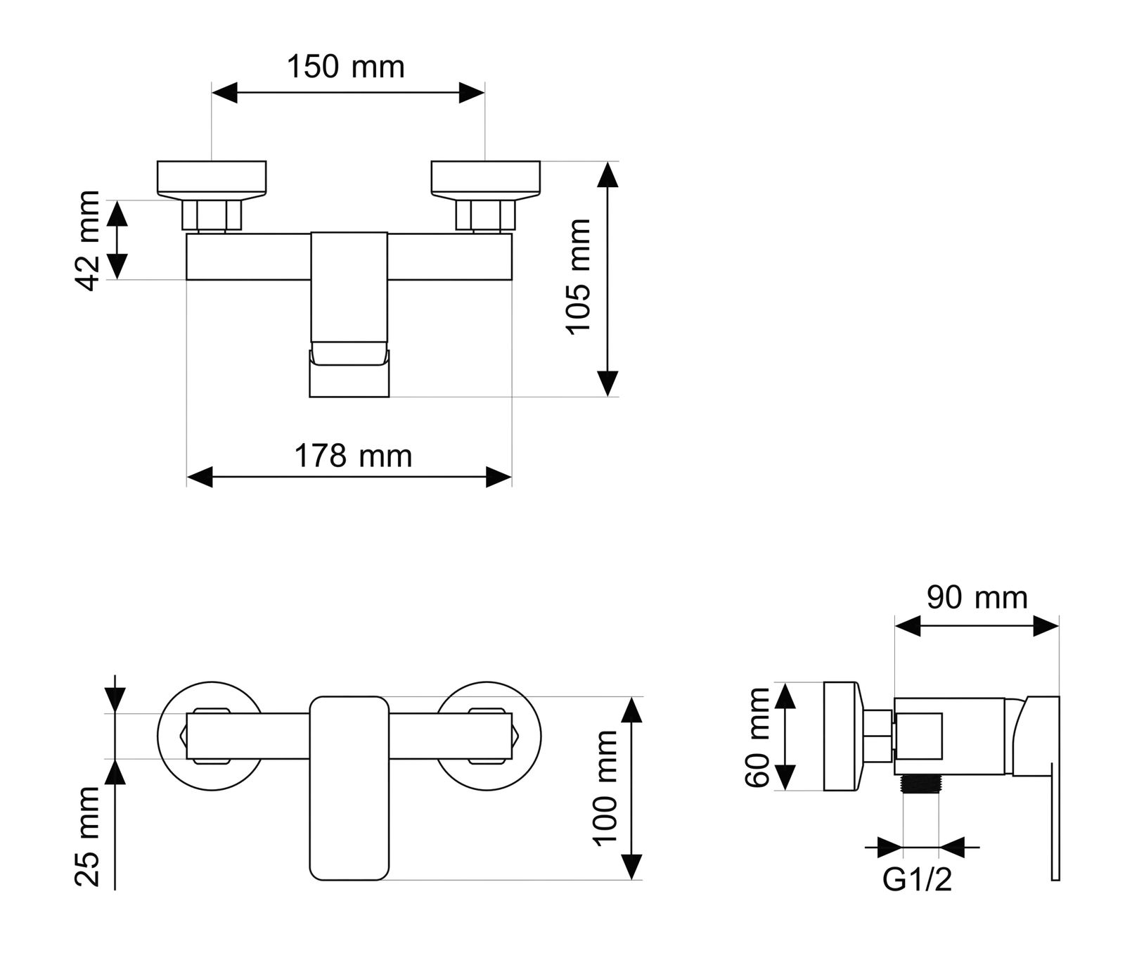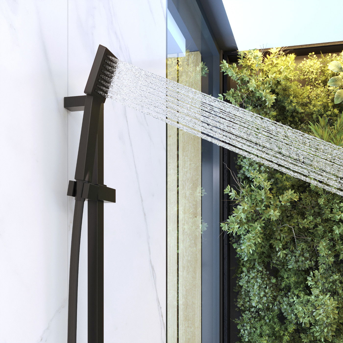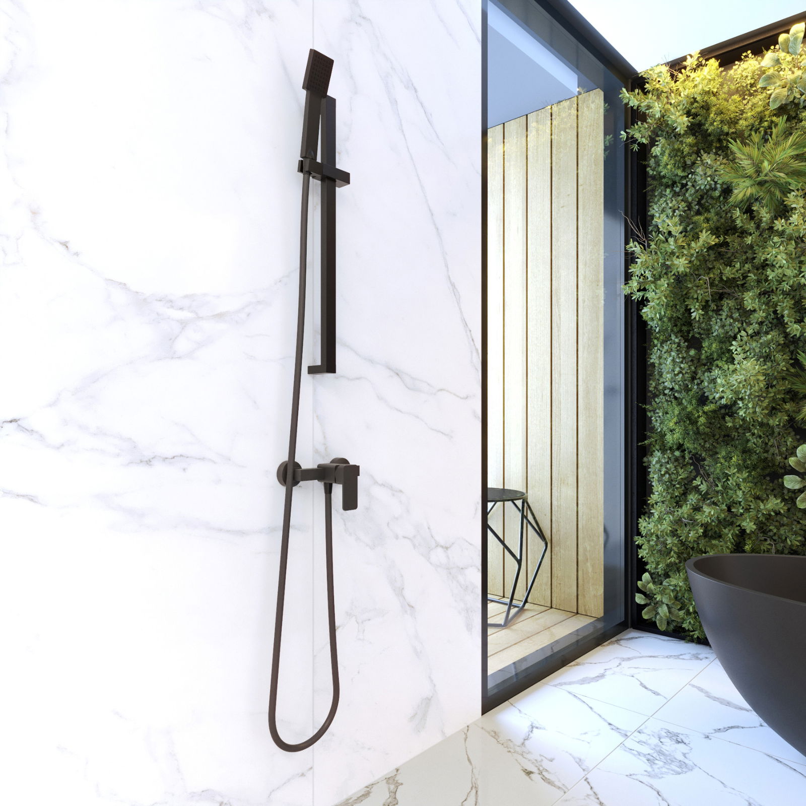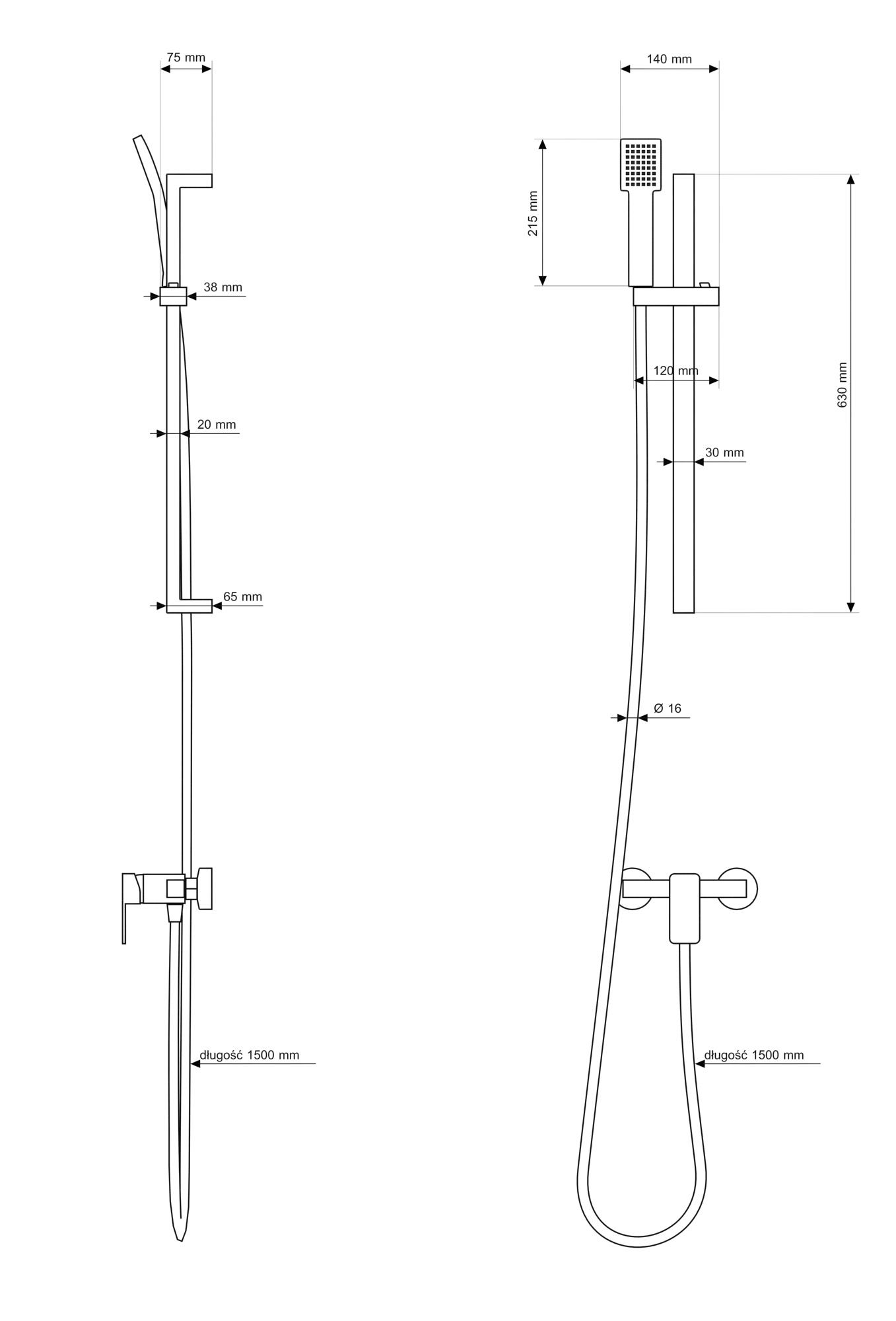 Drążek natryskowy ze słuchawką prysznicową, który po połączeniu z baterią tworzy uniwersalny i ponadczasowy zestaw łazienkowy.