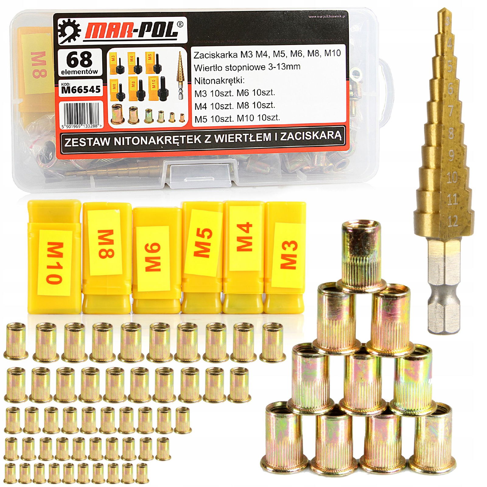 ZESTAW NITONAKRĘTEK Z WIERTŁEM I ZACISKARKĄ Nitownice Ręczne M66545