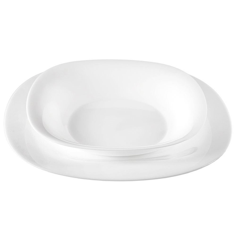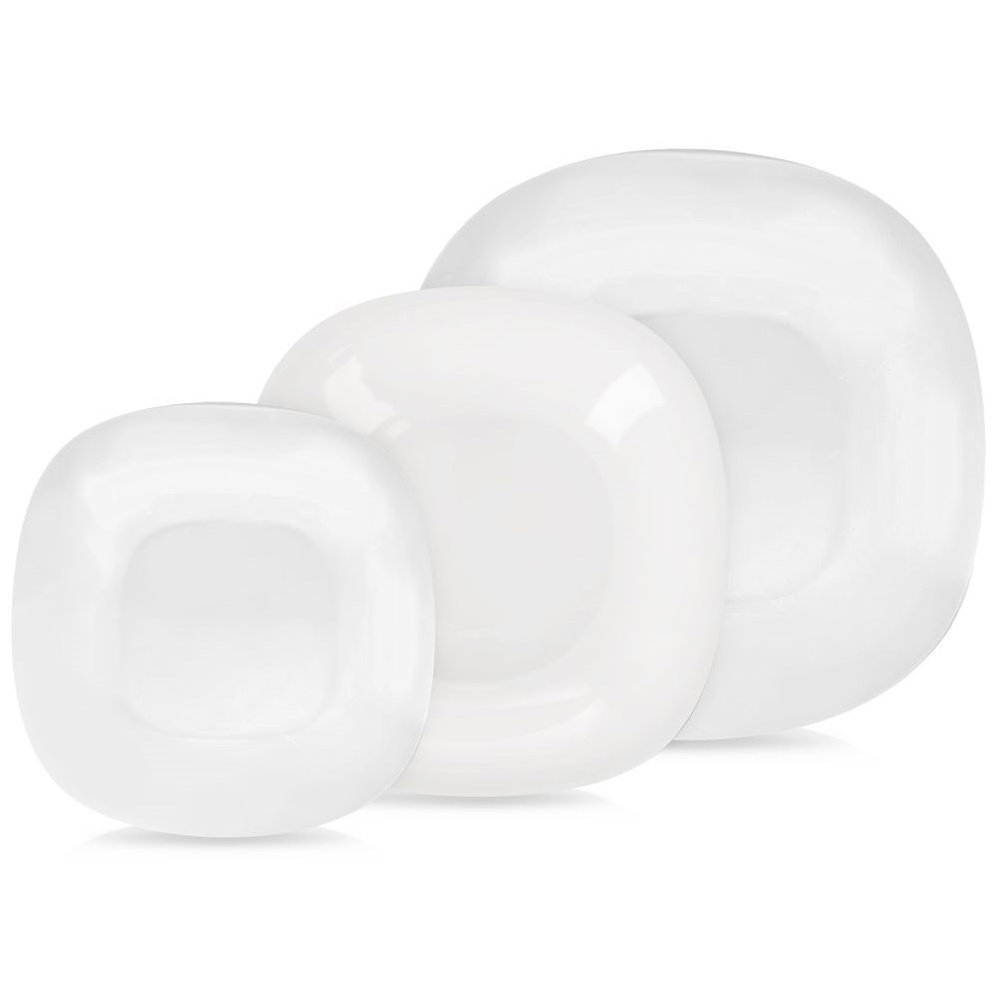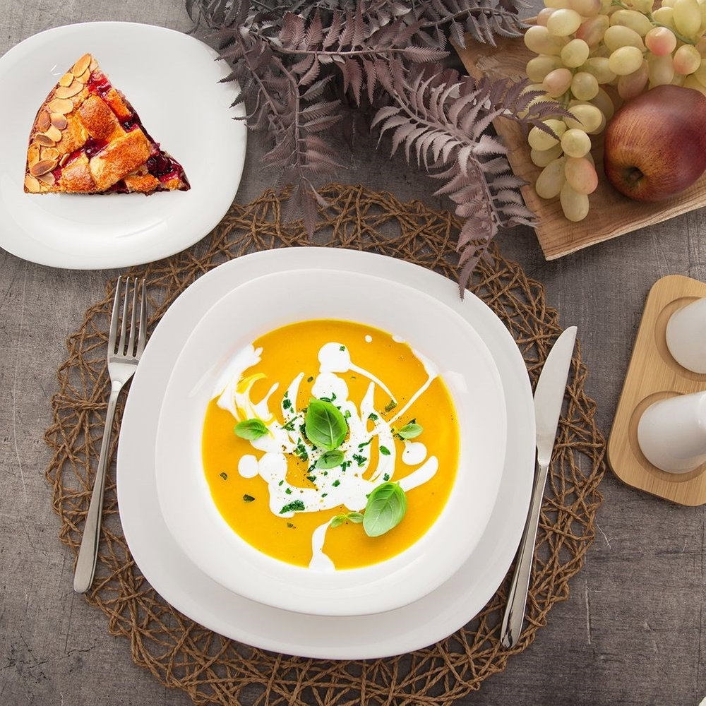 Zestaw obiadowy składający się z 18 elementów. W zestawie: 6x talerzyk deserowy o wymiarach 20 x 20 x 1,5 cm, 6x talerz obiadowy głęboki o wymiarach 21 x 21 x 3,5 cm i pojemności 500 ml oraz 6x talerz obiadowy płaski o wymiarach 26,5 x 26,5 x 2 cm. Zestaw jest niezwykle praktyczny. Przydatny w każdym domu podczas codziennych spotkań, jak i wyjątkowych okazji. Łatwy w czyszczeniu i wygodny w użytkowaniu. Każde z naczyń możemy użytkować osobno. Talerz głęboki będzie idealny na zupy, owsianki, płatki śniadaniowe oraz dania jednogarnkowe. Talerz obiadowy sprawdzi się do serwowania drugiego dania oraz przystawek. Talerzyk deserowy jest idealny do podawania wszelkiego rodzaju deserów - ciast, ciasteczek, babeczek, a także innych przekąsek lub dań.