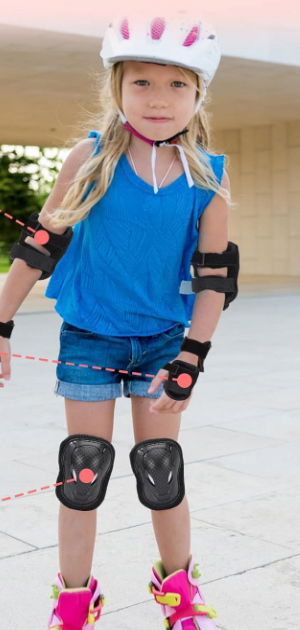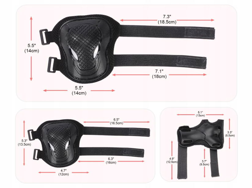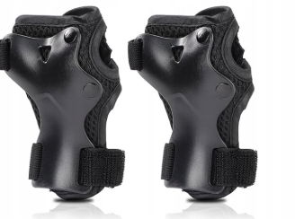 Ochraniacze zostały wyposażone w regulowane paski, które pozwalają na idealne dopasowanie do ciała dziecka. Na nadgarstkach zastosowano klamry, które gwarantują stabilność i pewność podczas aktywności sportowej.