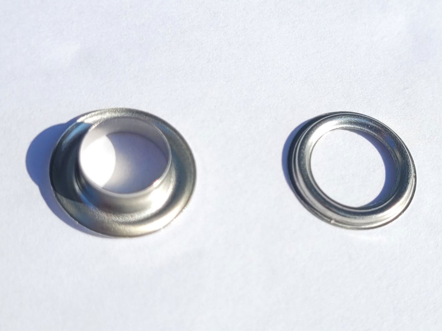 - Rozmiar oczka: średnica otworu wewnętrznego 10 mm, średnica zewnętrzna kołnierza 17 mm, wysokość kołnierza (przed zakuciem) : 5 mm