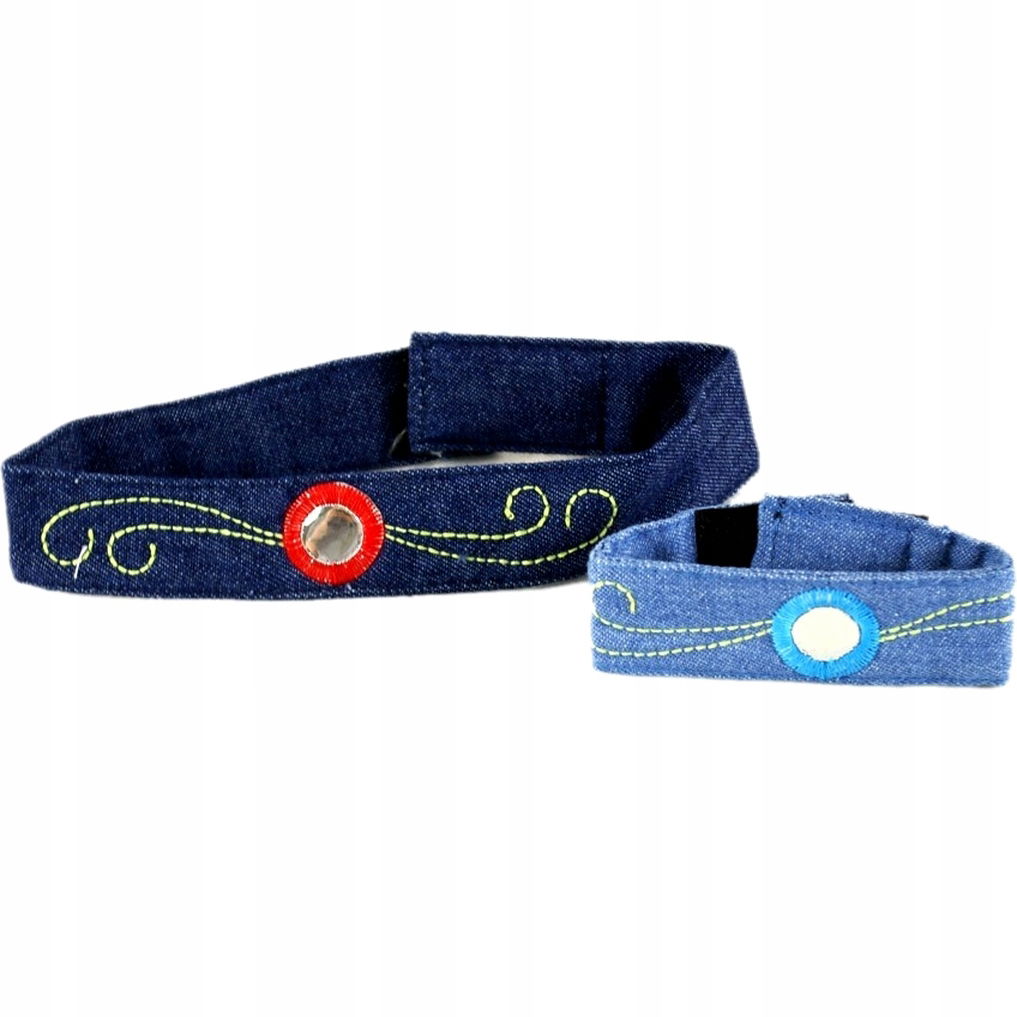Zestaw składający się z opaski na szyję o długości 19 cm oraz bransoletki z materiału jeans o długości 8,5 cm to stylowe i modne dodatki. Wykonane z trwałego materiału, świetnie uzupełnią codzienny strój i dodadzą mu oryginalnego charakteru.