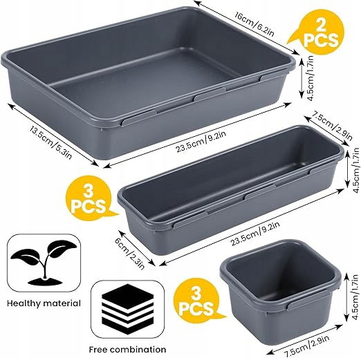 ✅ Duża pojemność – dzięki naszemu zestawowi 8 szuflad, pudełek do przechowywania w czterech różnych rozmiarach zawsze masz idealne rozwiązanie do łazienki, biura, biżuterii i wielu innych.
