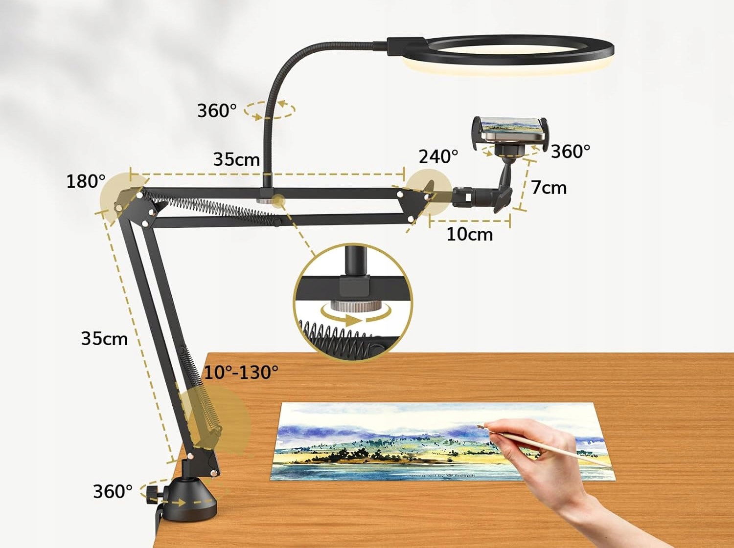 ✅ Regulowane oświetlenie: 3 tryby kolorów (chłodny, ciepły, naturalny) oraz 10 poziomów jasności umożliwiają dostosowanie światła do każdej sytuacji.