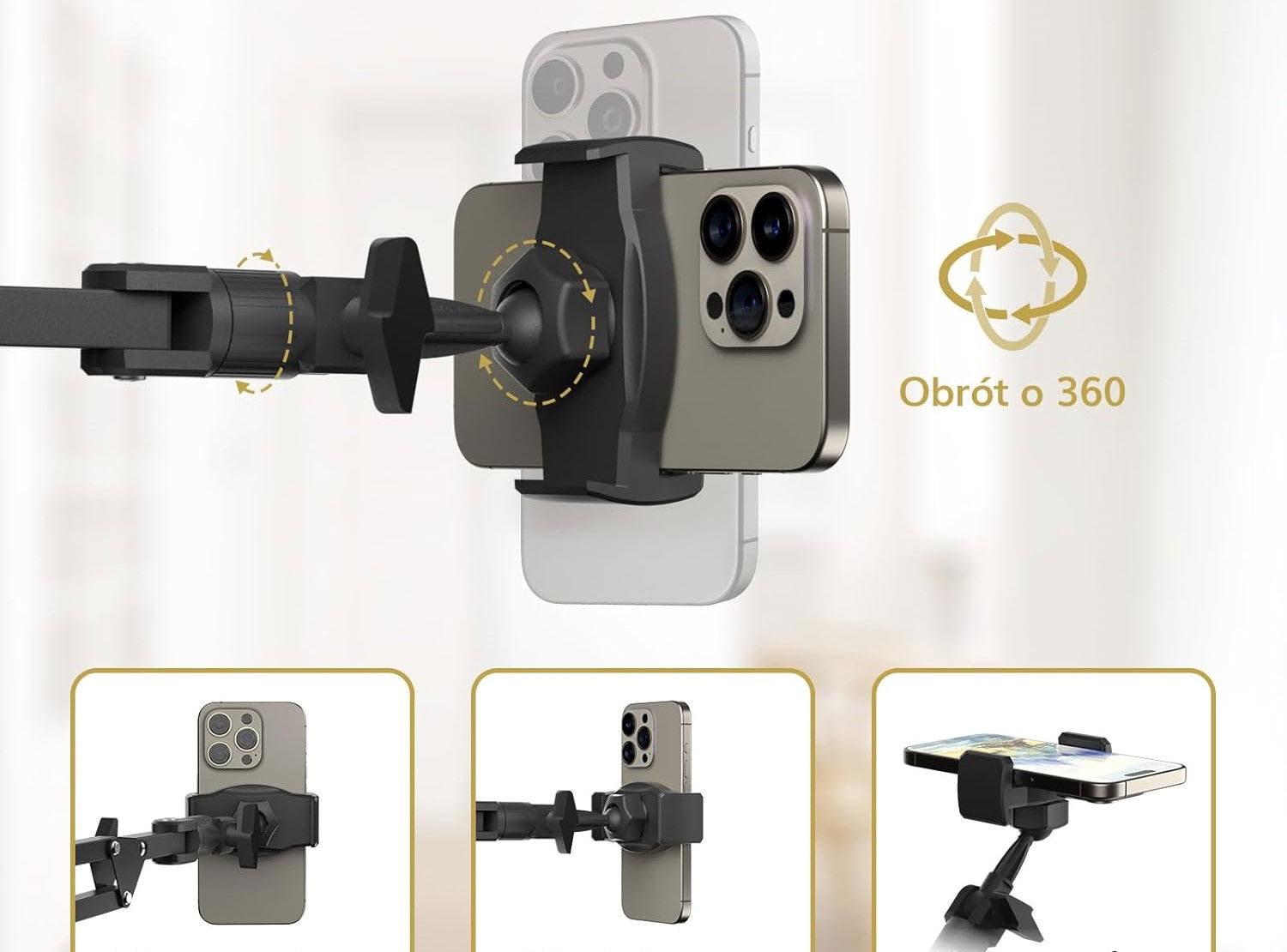 ✅ Regulacja kąta fotografowania: Uniwersalne kółko w uchwycie na telefon umożliwia łatwą zmianę kąta, a przedłużony drążek zapewnia większą elastyczność.