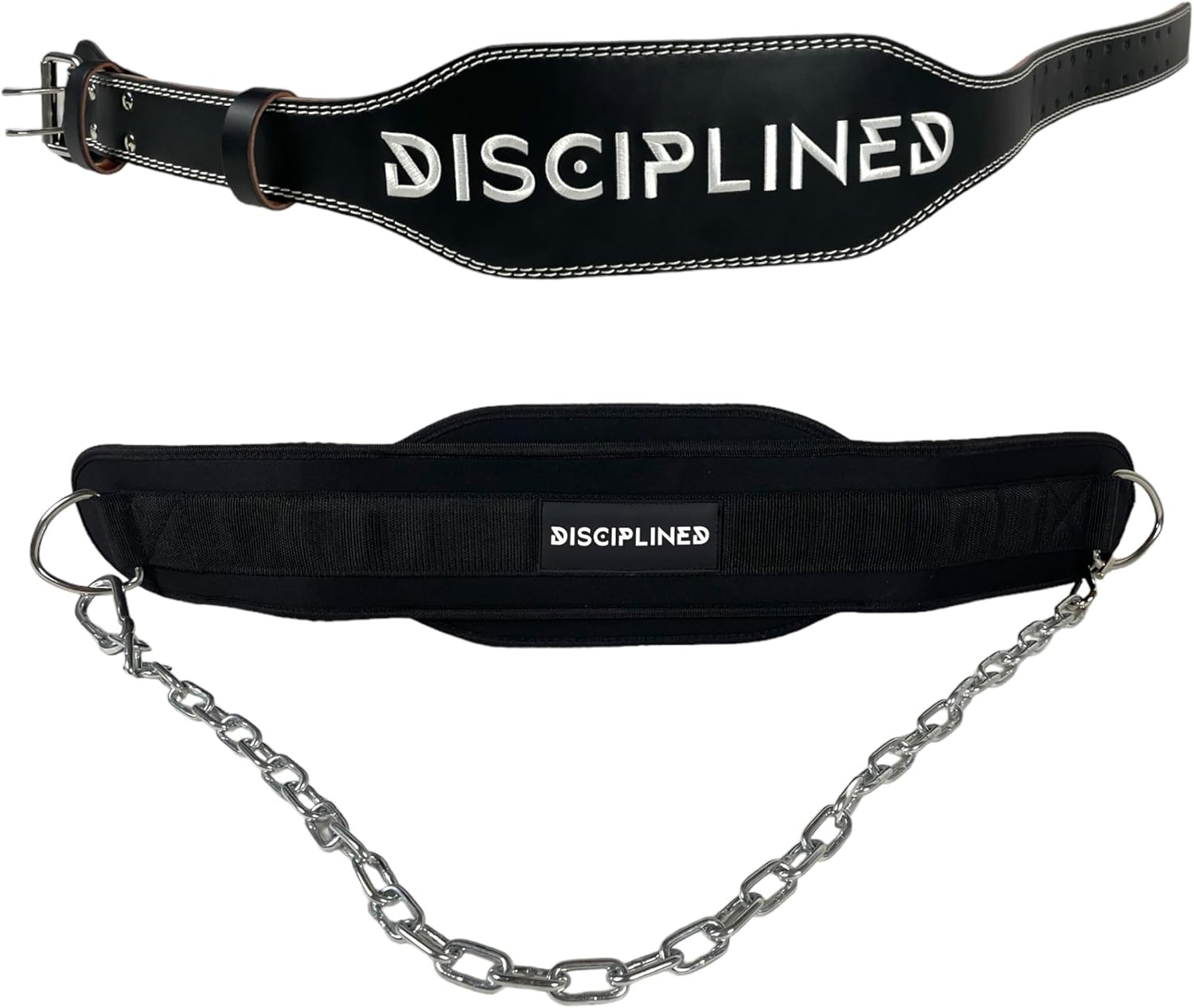 Czarny skórzany i drugi nylonowy pas do podnoszenia ciężarów z wytrzymałym łańcuchem do podwieszania ciężarów dla mężczyzn i kobiet, idealny do treningu fitness, treningu ulicznego i kalisteniki. Dodaj ciężar do podciągania się i dipów dzięki temu obciążonemu pasowi, idealnemu do trójboju siłowego i siłowego.