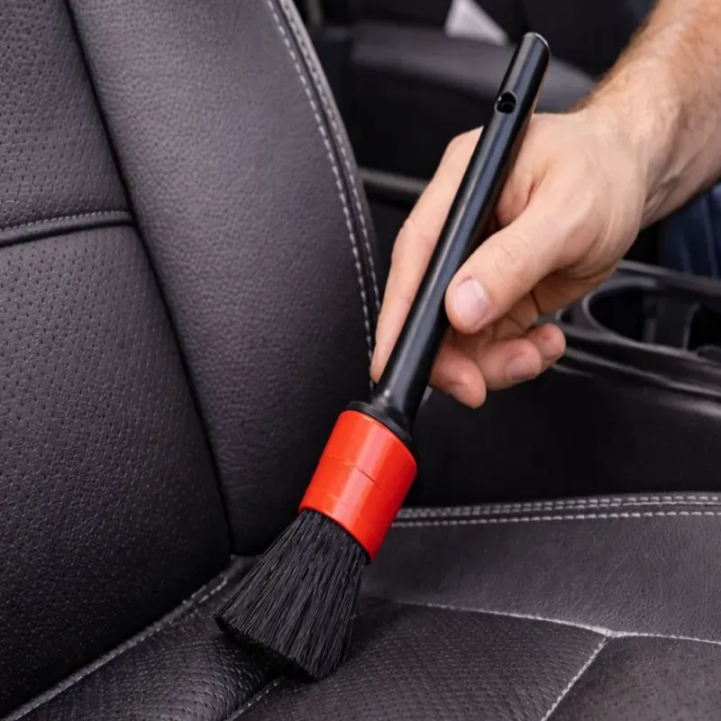 Zestaw pędzli detailingowych do auta w różnych rozmiarach umożliwia precyzyjne czyszczenie wnętrza oraz elementów zewnętrznych samochodu. Miękkie, elastyczne włosie skutecznie usuwa kurz, piasek i zabrudzenia z nawiewów, szczelin, emblematów, felg czy kratek wentylacyjnych, nie powodując zarysowań.