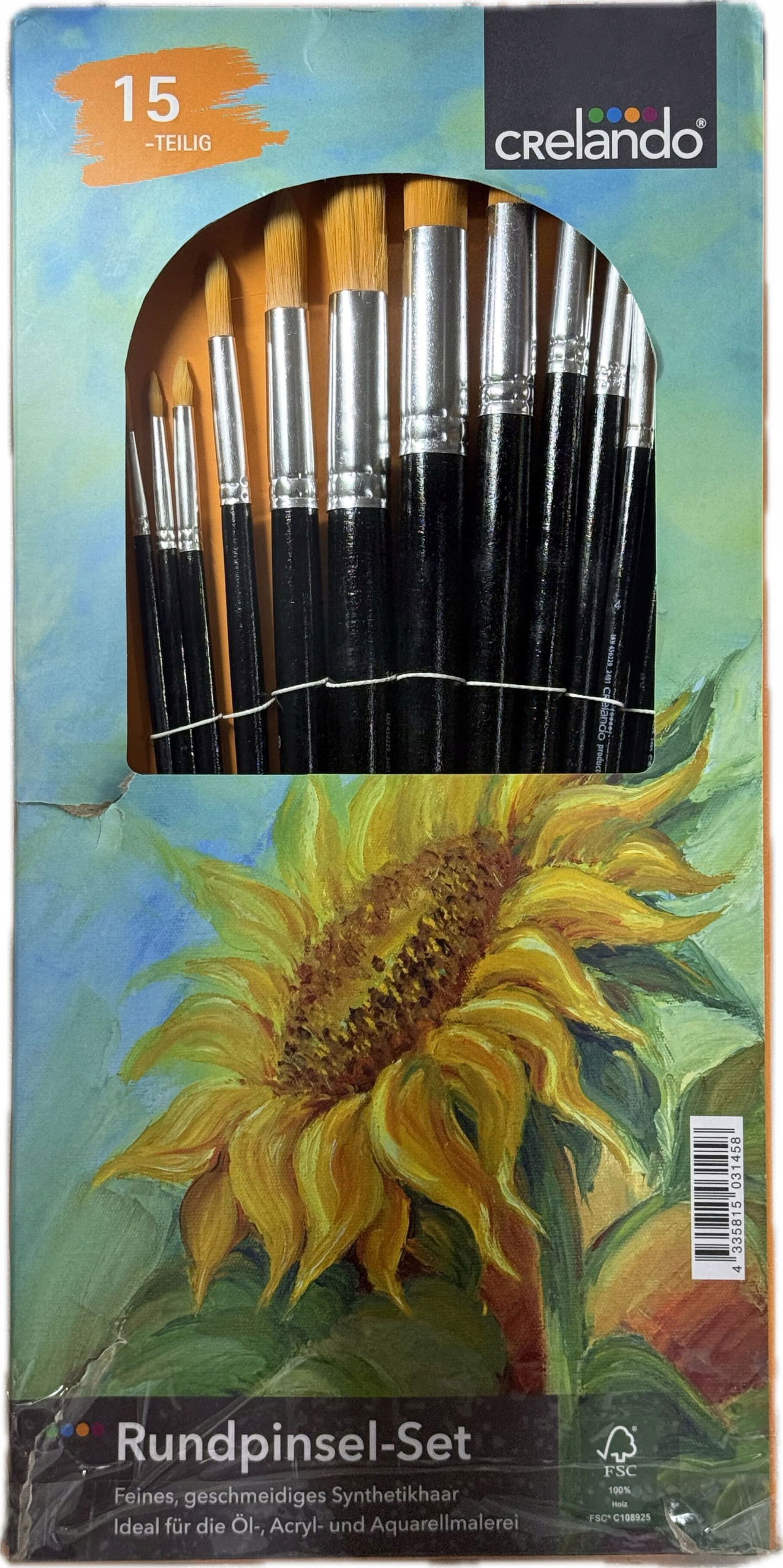 Profesjonalny zestaw pędzli malarskich Crelando to idealne narzędzie dla każdego, kto chce rozwijać swoją pasję do malarstwa. W komplecie znajduje się 15 pędzli o różnych kształtach i rozmiarach, dzięki czemu sprawdzą się zarówno do detali, jak i większych powierzchni. Syntetyczne włosie jest miękkie i elastyczne, zapewnia precyzję i równomierne nakładanie farby. Drewniana rękojeść gwarantuje wygodę użytkowania, a aluminiowa tuleja wzmacnia konstrukcję i chroni przed wypadaniem włosia. Zestaw doskonały do farb olejnych, akrylowych i akwarelowych.