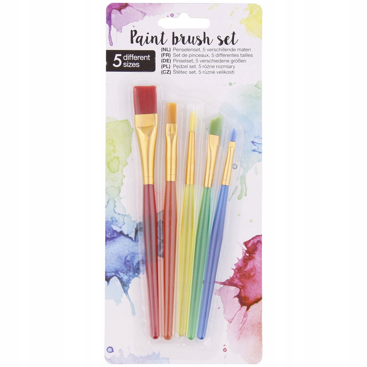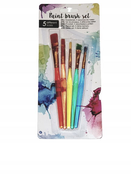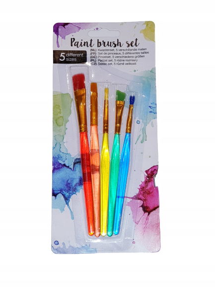 W zestawie oferujemy 5 różnych pędzli malarskich w neonowym