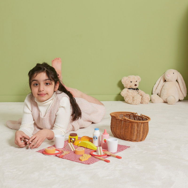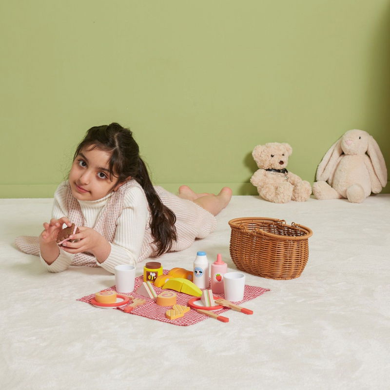 Planując piknik z przyjaciółmi, nie może zabraknąć Drewnianego Zestawu Piknikowego od VIGA. Ten uroczy koszyk z sztucznej trzciny wypełniony jest drewnianymi akcesoriami i tkaniną w kratę. Dzięki solidnym uchwytom, łatwo można go przenosić, aby zabawić się gdziekolwiek zechcesz. Zestaw zawiera drewniane przekąski i akcesoria, które umożliwiają zabranie ulubionych zabawek na piknik lub odegranie scenek z przyjacielem. Zabawa może odbywać się zarówno na świeżym powietrzu, jak i w domu. Elementy potraw można kroić drewnianym nożem, co rozwija zdolności motoryczne dziecka. Dodatkowo, naśladowanie dorosłych sprzyja rozwojowi umiejętności społecznych.