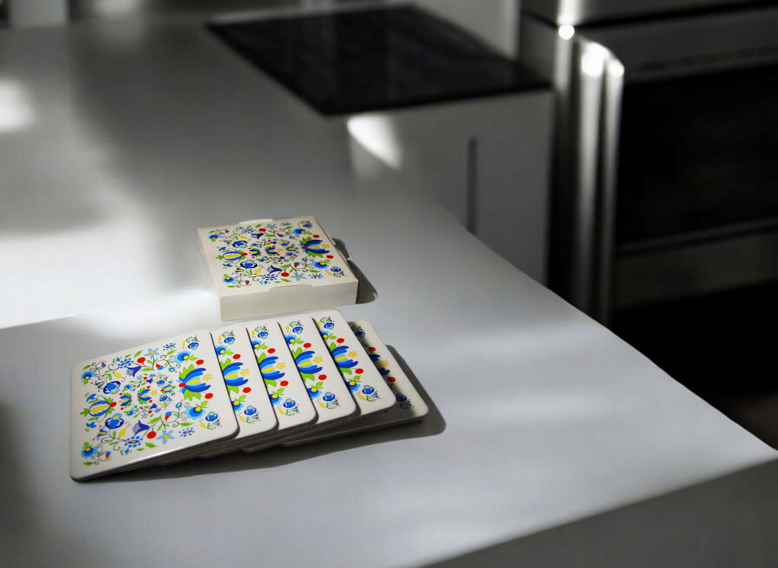 Wymiary: Każda podkładka ma wymiary 9 x 9 cm, co czyni je praktycznymi i łatwymi do przechowywania