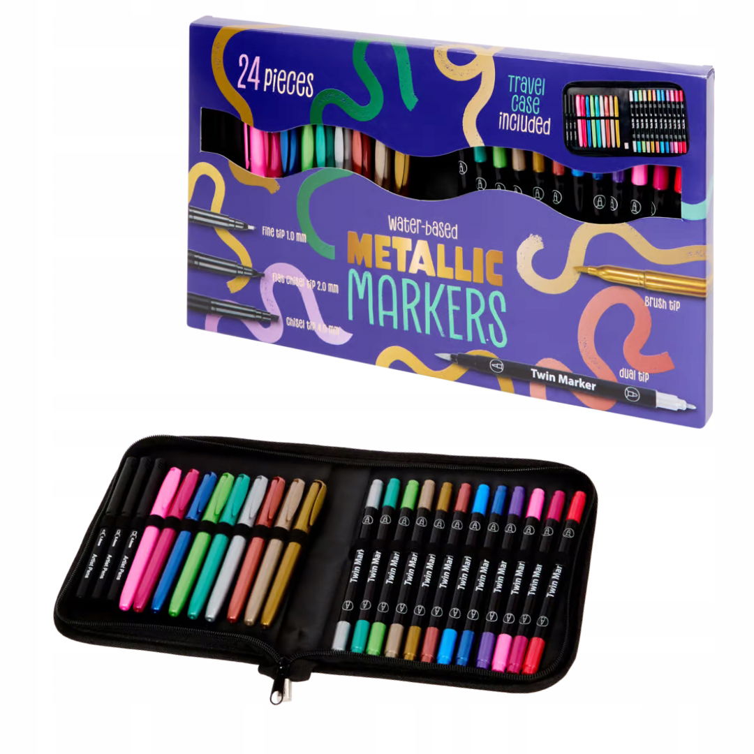 Zestaw Podwójne Pisaki Metaliczne REWELACYJNE DO KALIGRAFII 24 szt. ETUI