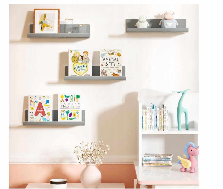 Ten zestaw 4 półek ściennych WELDUN w kolorze szarym to idealny sposób na eksponowanie ramek ze zdjęciami, książek, obrazów, czy małych roślin w salonie i sypialni. Mogą być również używane jako kuchenny stojak na przyprawy, półka do przechowywania w łazience, wiszące półki w korytarzu i półki przy łóżku.