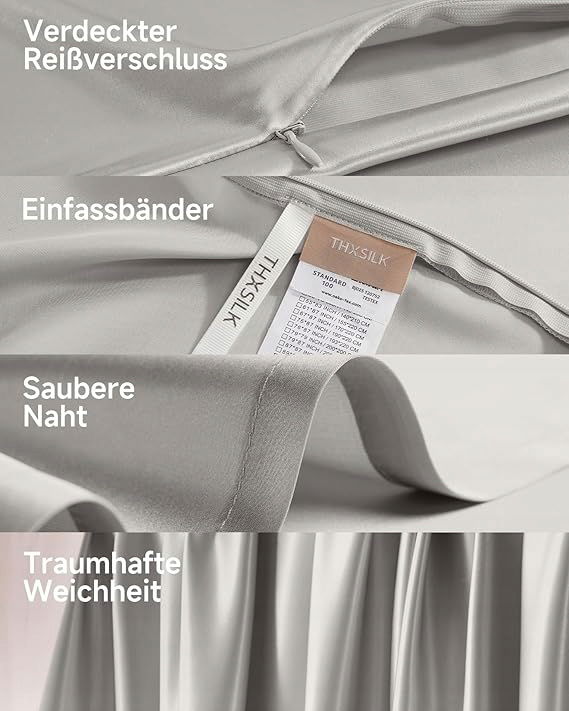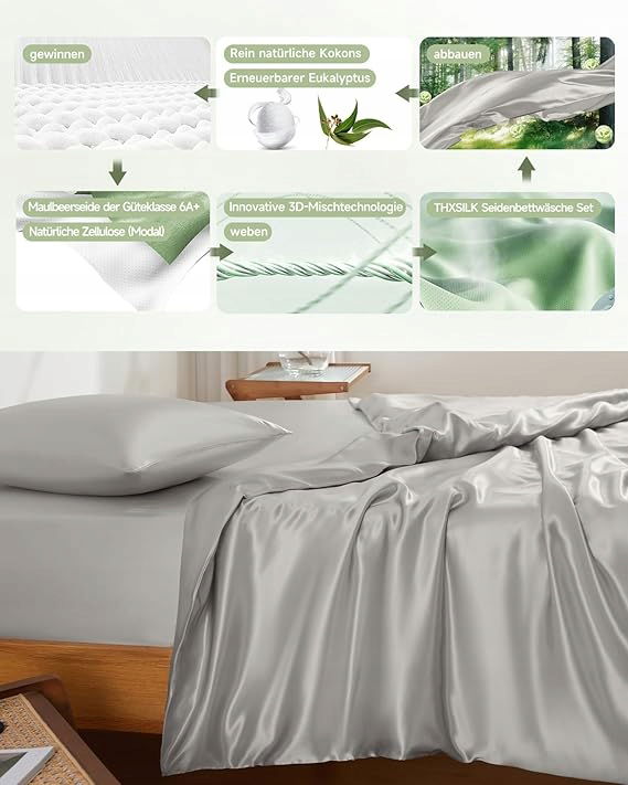 Zestaw pościeli jedwabnej THXSILK 2-częściowy - szary, luksusowy, miękki