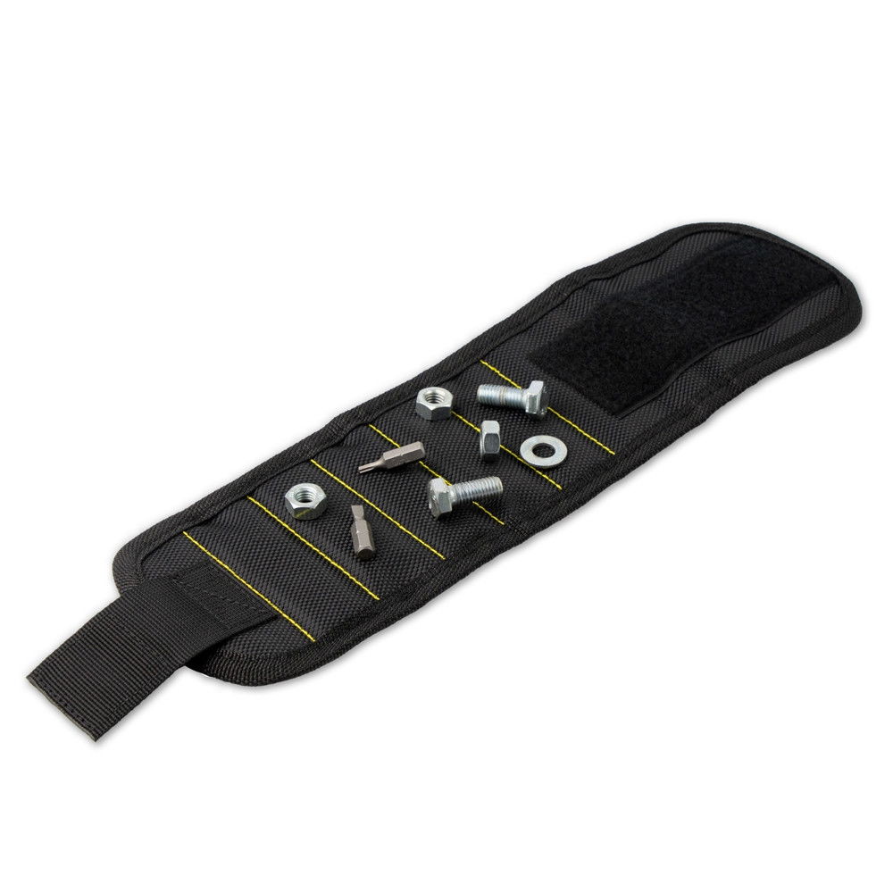 Przedstawiamy Opaskę Złotej Rączki, nowatorskie rozwiązanie, które ułatwi pracę każdemu majsterkowiczowi. Ta wygodna opaska na rękę wyposażona jest w magnesy, do których można przyczepić drobne metalowe przedmioty, takie jak śrubki, wkręty, nakrętki czy bity. Wszystko, czego potrzebuje Twój Tata, będzie zawsze pod ręką.