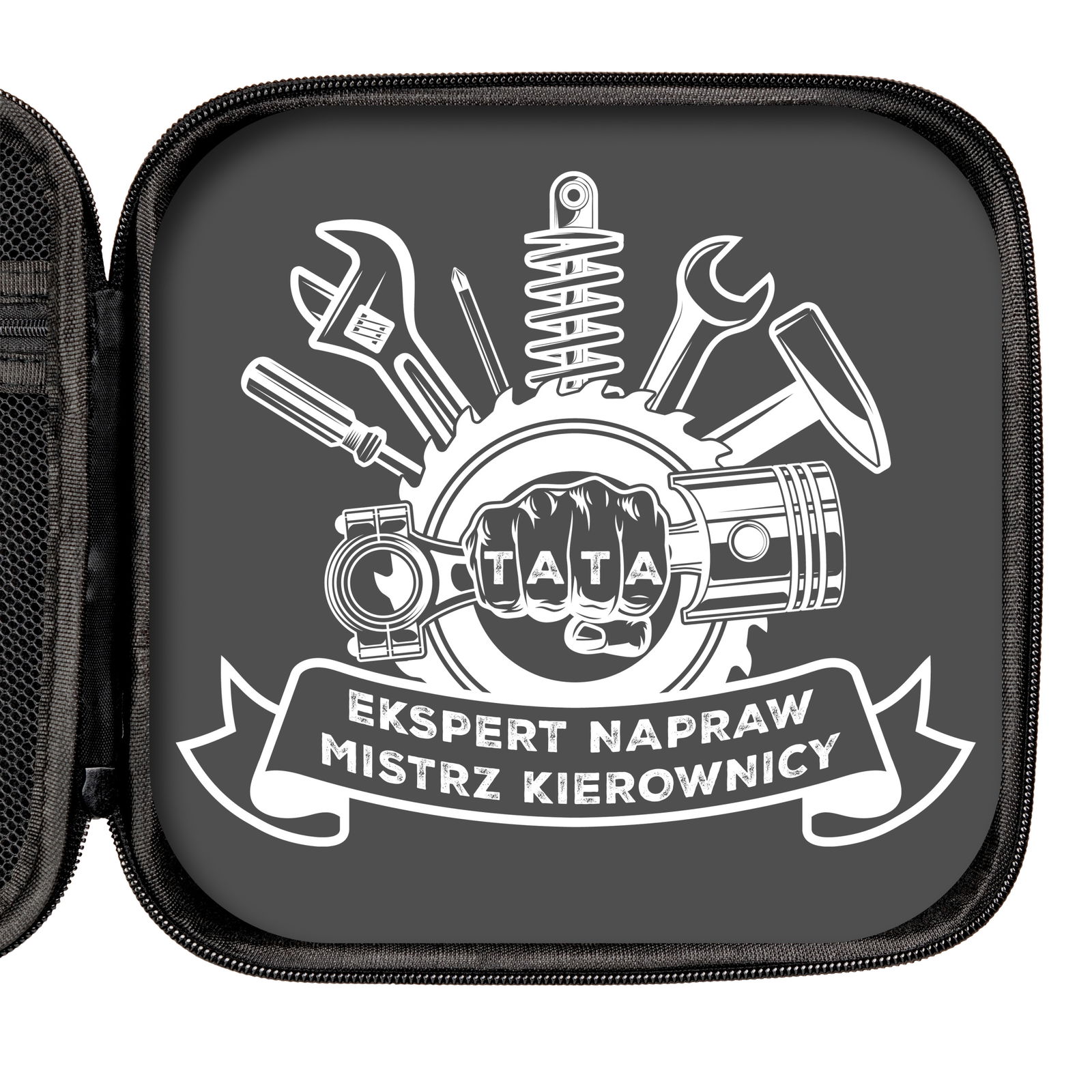 - Napis na wkładce: Tata - Ekspert napraw, Mistrz kierownicy.