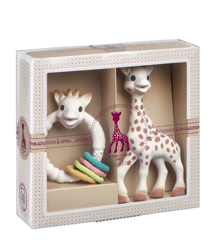 Zestaw prezentowy Żyrafa Sophie z kolorowym gryzakiem na kółku