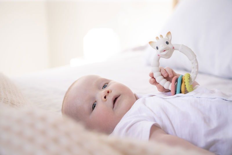 - Gryzak Żyrafa Sophie o wysokości 18 cm, wykonany z naturalnego lateksu z żywicy drzewa gumowego. Jego okrągłe kształty i lekka konstrukcja są idealne do żucia przez niemowlęta.
