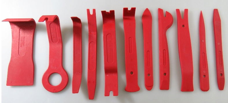 Zestaw ściągaczy do demontażu listew, spinek, oraz tapicerki w samochodach i urządzeniach technicznych.