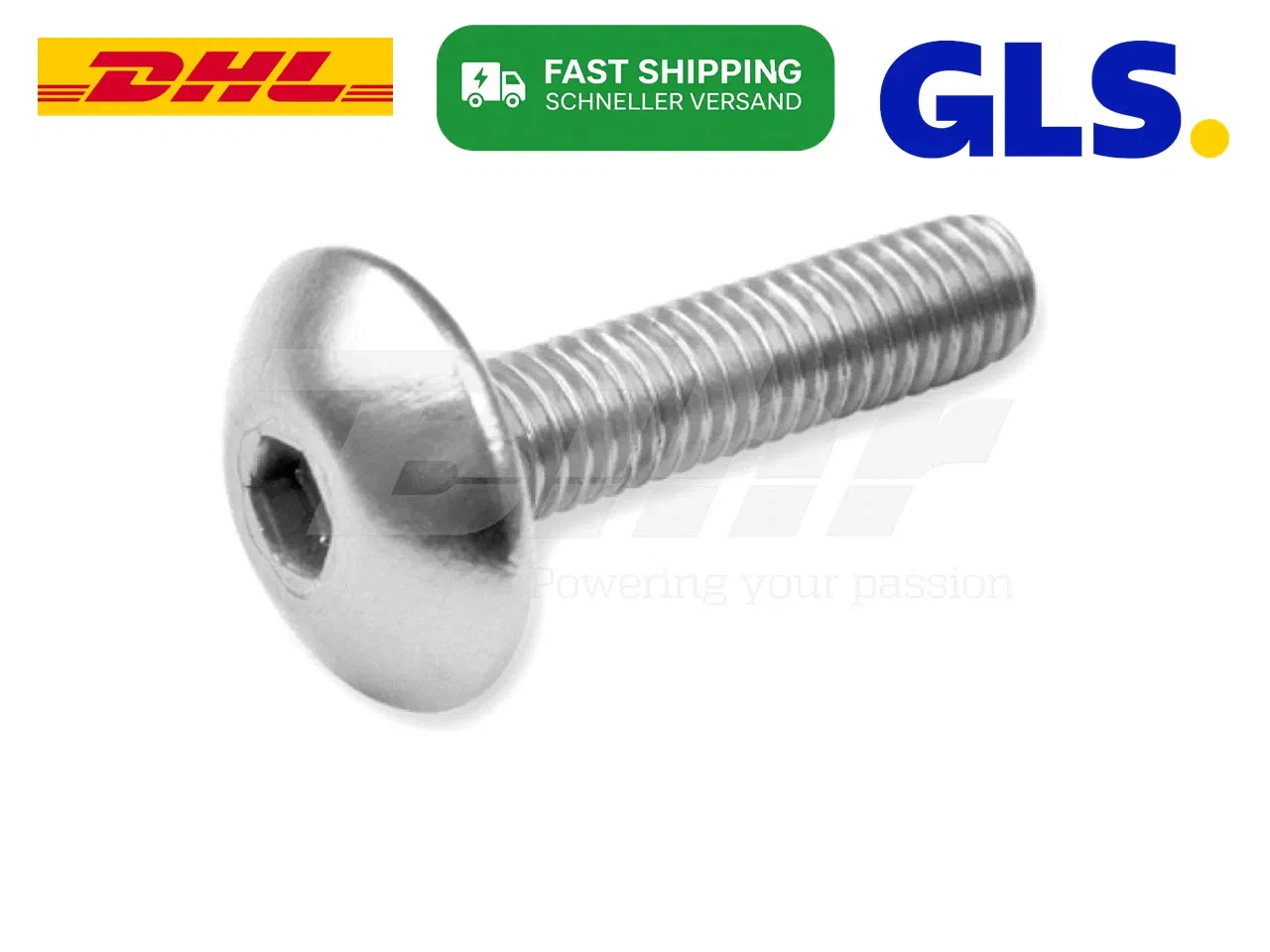 Zestaw sześciu śrub owiewki o rozmiarze M6x20, wykonanych w kolorze srebrnym. Przeznaczony do mocowania elementów owiewek motocyklowych, zapewniając stabilne i estetyczne połączenie. Jest to standardowy element montażowy, kompatybilny z wieloma modelami motocykli.