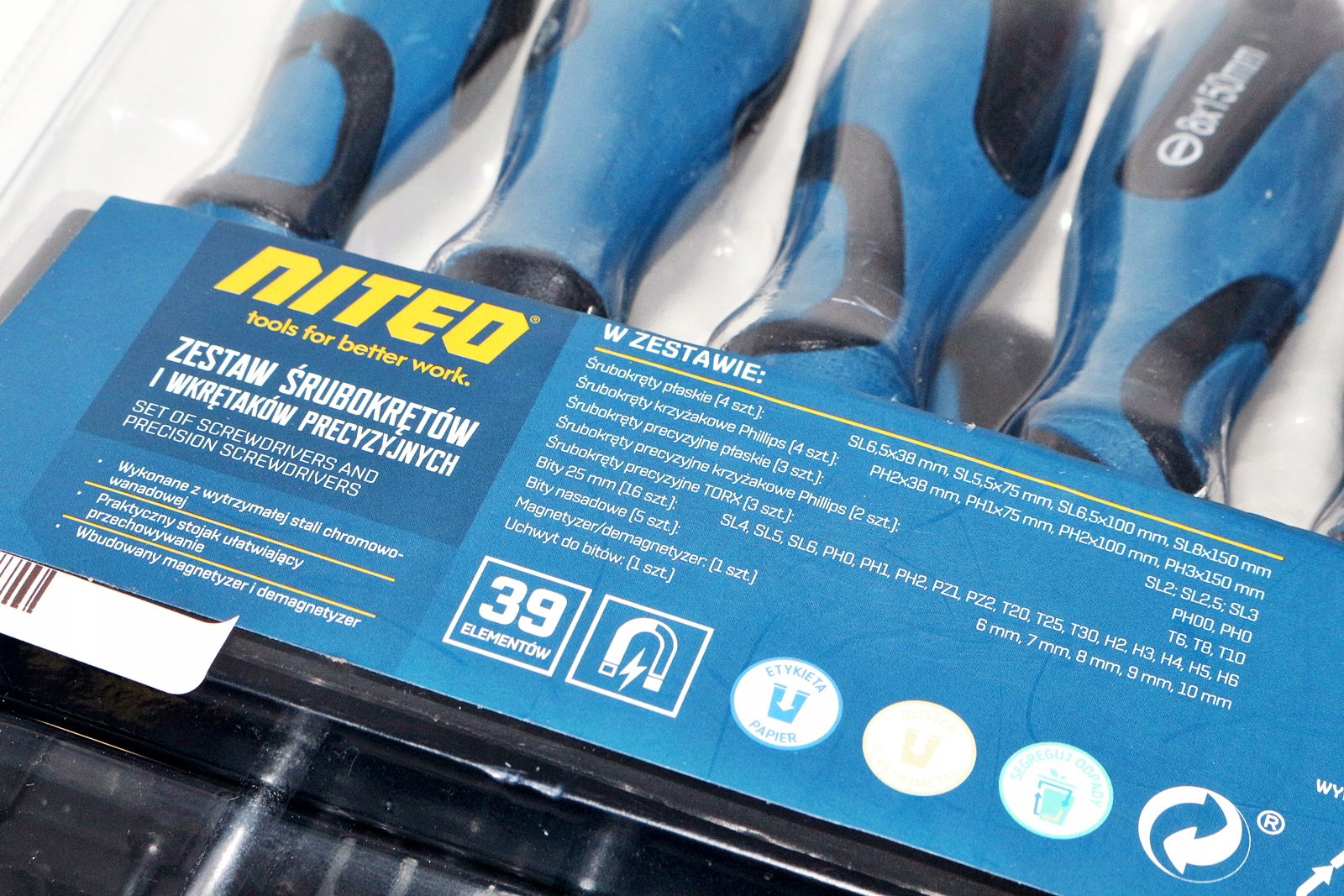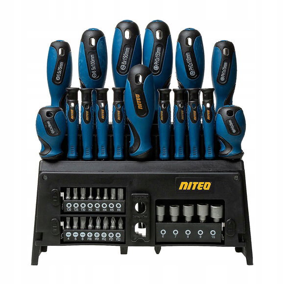 Zestaw wkrętaków od NITEO, 39 sztuk. Idealny zestaw do gospodarstwa domowego oraz przydomowego warsztatu.
