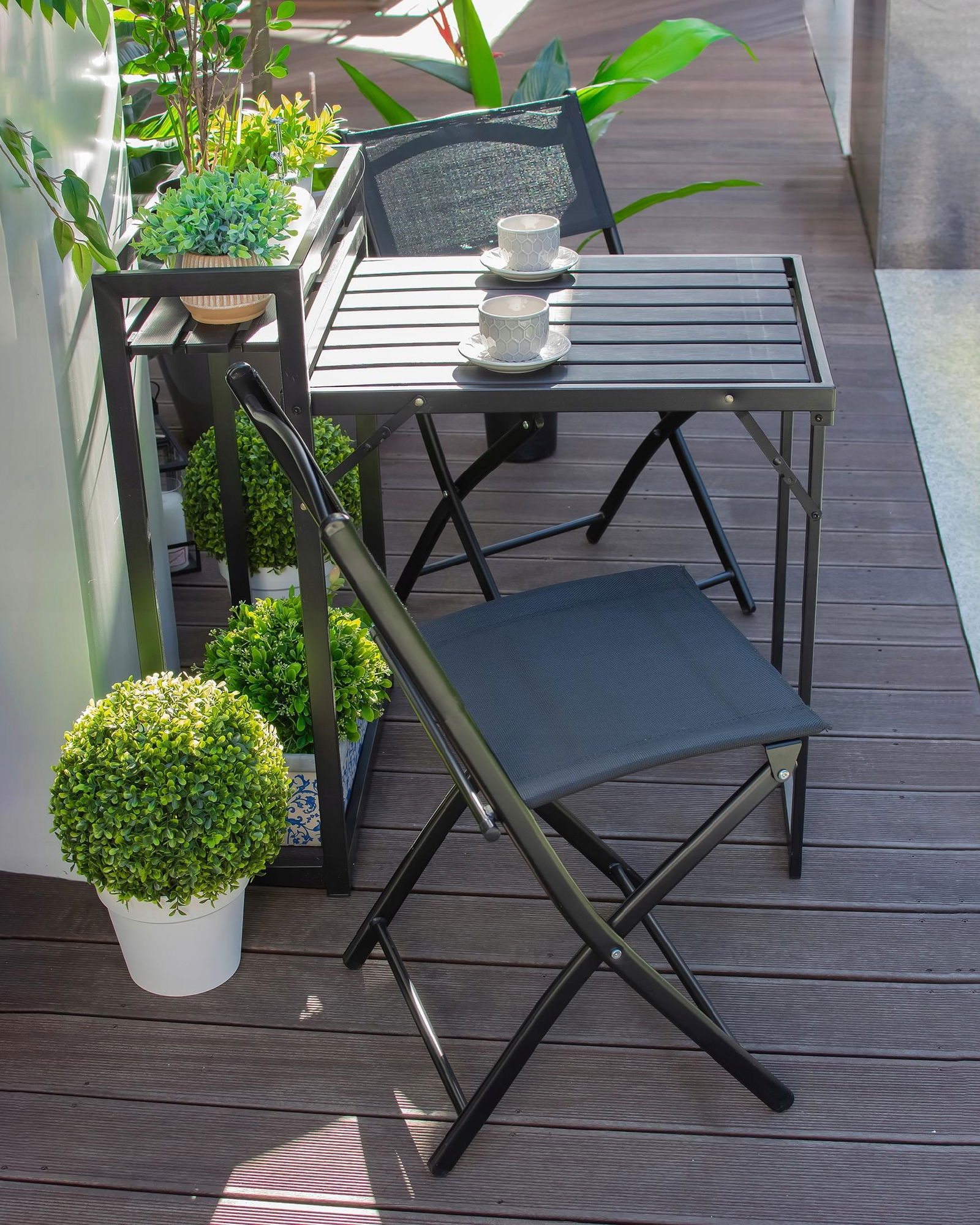 Zastosowanie: Ten zestaw mebli składanych sprawdzi się doskonale na małych przestrzeniach, takich jak balkony, tarasy czy niewielkie ogrody. Dzięki swojej funkcjonalności i estetycznemu wyglądowi, meble te stanowią praktyczny i stylowy wybór dla osób ceniących zarówno komfort, jak i nowoczesny design.
