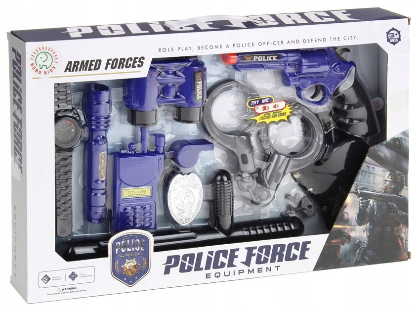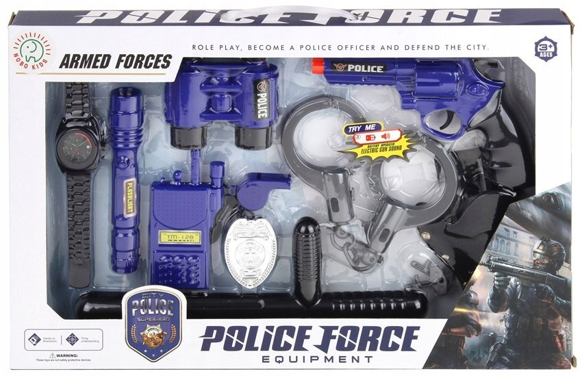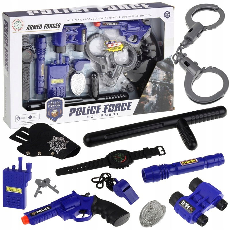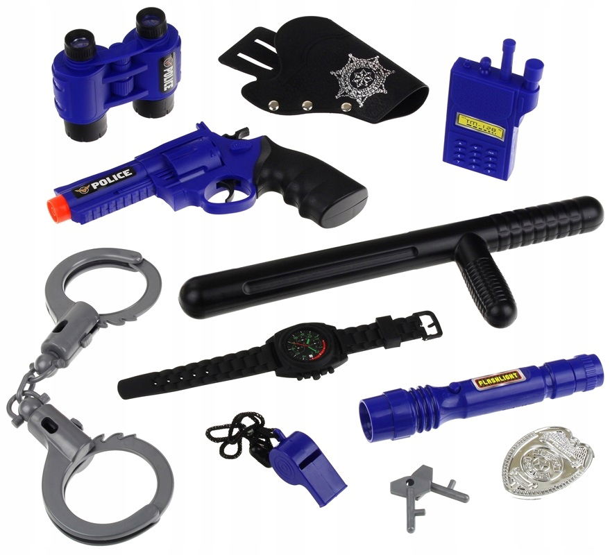 Jeśli Twój syn marzy o tym, by zostać stróżem prawa, mamy coś idealnego! Z wyposażeniem, jakie znajduje się w przedstawionym zestawie, dziecko zaprowadzi porządek na balu, w domu i podwórku. Zawiera wszelkie niezbędne akcesoria, aby zostać policjantem lub policjantką, wcielając się w służbę mundurową. Bogato wyposażony zestaw, pozwoli przeżyć Twojemu dziecku wspaniałe chwile radosnej zabawy. Możesz tu znaleźć pistolet z kaburą, gdzie po naciśnięciu spustu, słychać odgłosy jak w realistycznym pistolecie.