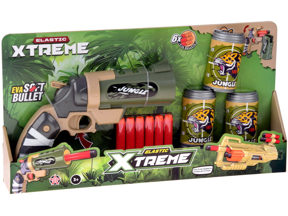 Dzięki automatycznemu magazynekowi na 6 naboi, strzelanie do plastikowych puszek stanie się niezwykle ekscytującym doświadczeniem. Pamiętaj jednak o zasadach bezpieczeństwa - nie celuj w twarz ani oczy, unikaj stosowania zabawki wobec zwierząt i nie używaj jej w miejscach publicznych, gdzie mogłaby przeszkadzać innym.