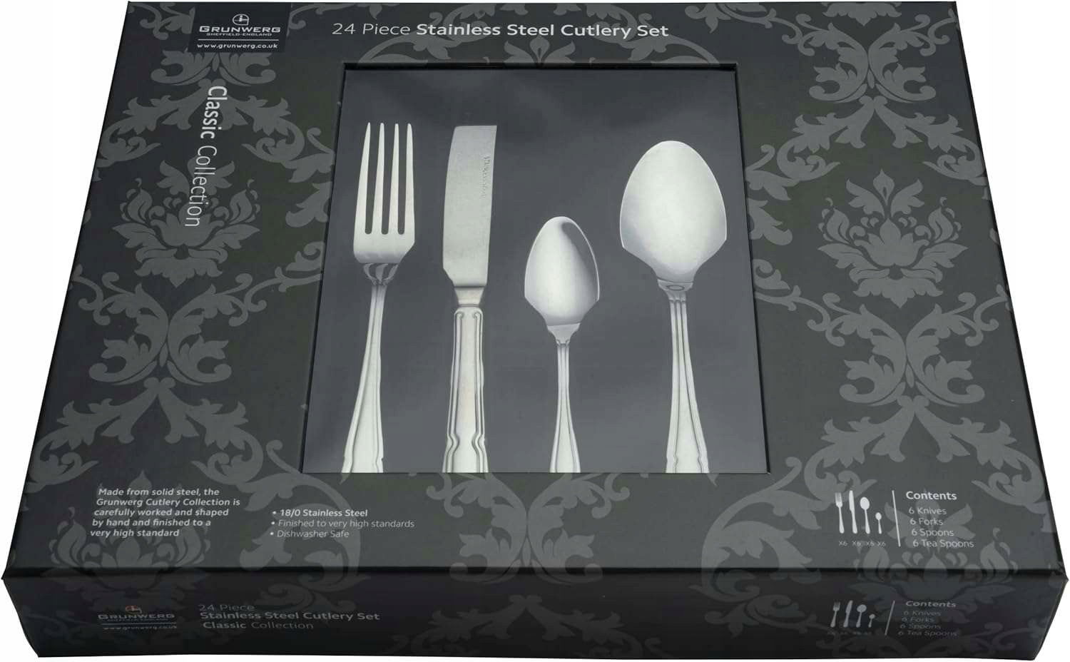 Zestaw Sztućców 24el Stal 18/0 Pudełko Grunwerg ZESTAW DLA 6 OSOB