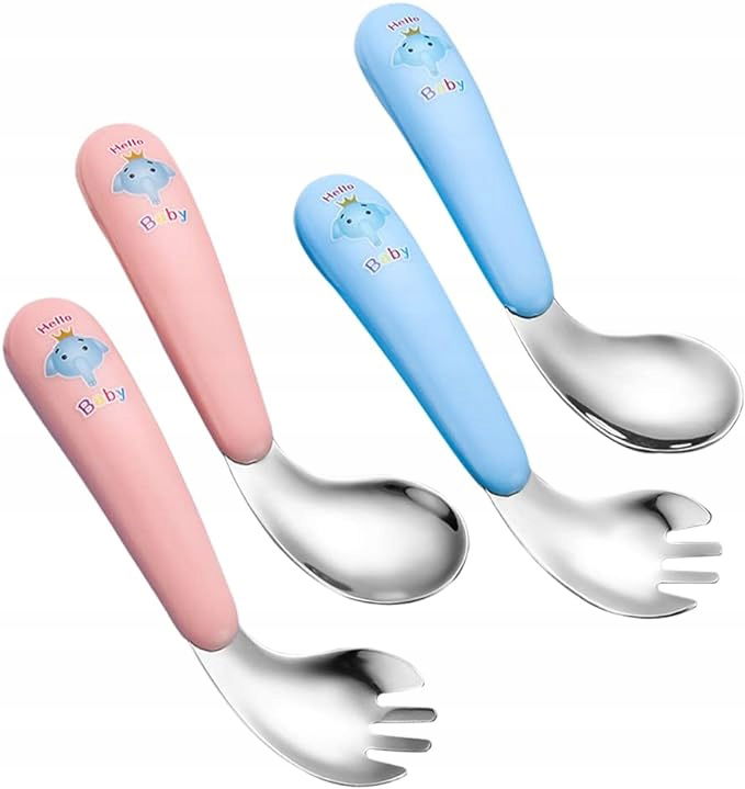 HUYIWEI 4 sztuki przyborów dla niemowląt, zestaw sztućców dla dzieci, stal nierdzewna, widelec do lwa, ze wzorem słonia dla niemowląt, świetna zabawa dla dziecka, samodzielne jedzenie