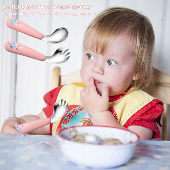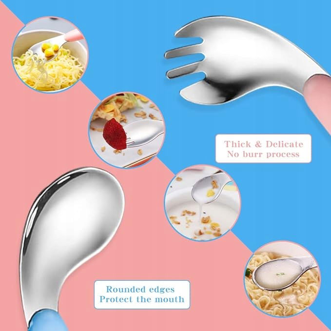 [Idealny rozmiar] Wymiary widelca i łyżki dla dzieci wynoszą 13 x 3 cm. Nadaje się do małych dłoni dzieci, uchwyt dobrze leży w dłoni, końcówka widelca jest okrągła i gładka, jest bardzo bezpieczna w użyciu i może być używana przez dzieci z zaufaniem