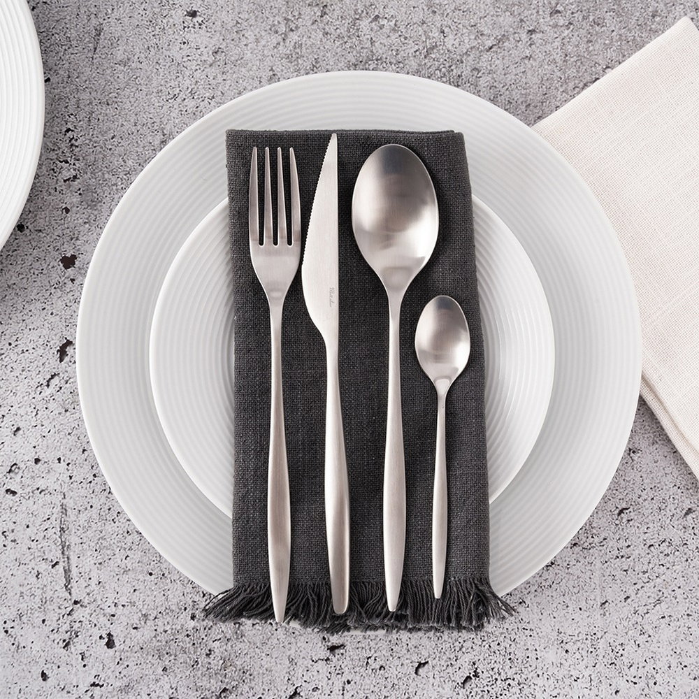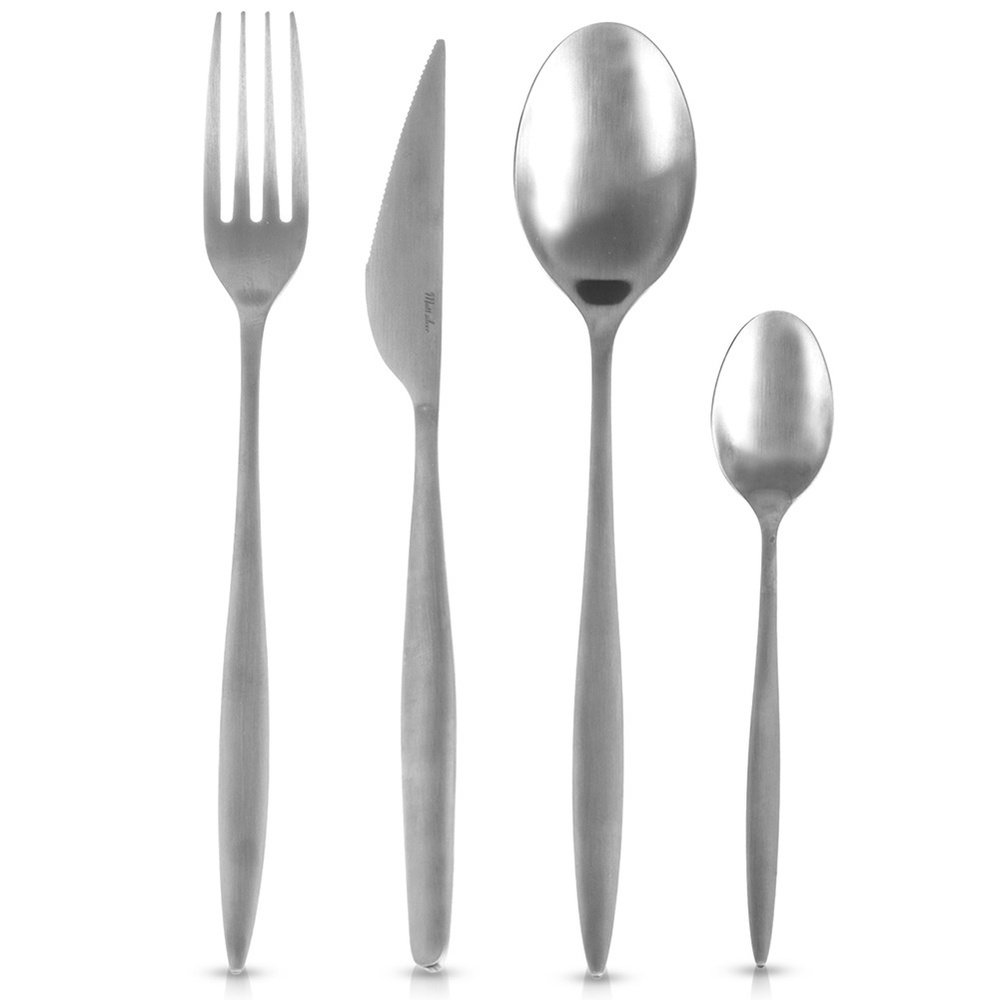 Wykonane ze stali nierdzewnej - Sztućce zostały wykonane z najwyższej jakości stali nierdzewnej odpornej na codzienne użytkowanie. Sztućce są w srebrnym kolorze z matowym wykończeniem. Odpowiednio użytkowane posłużą długie lata.